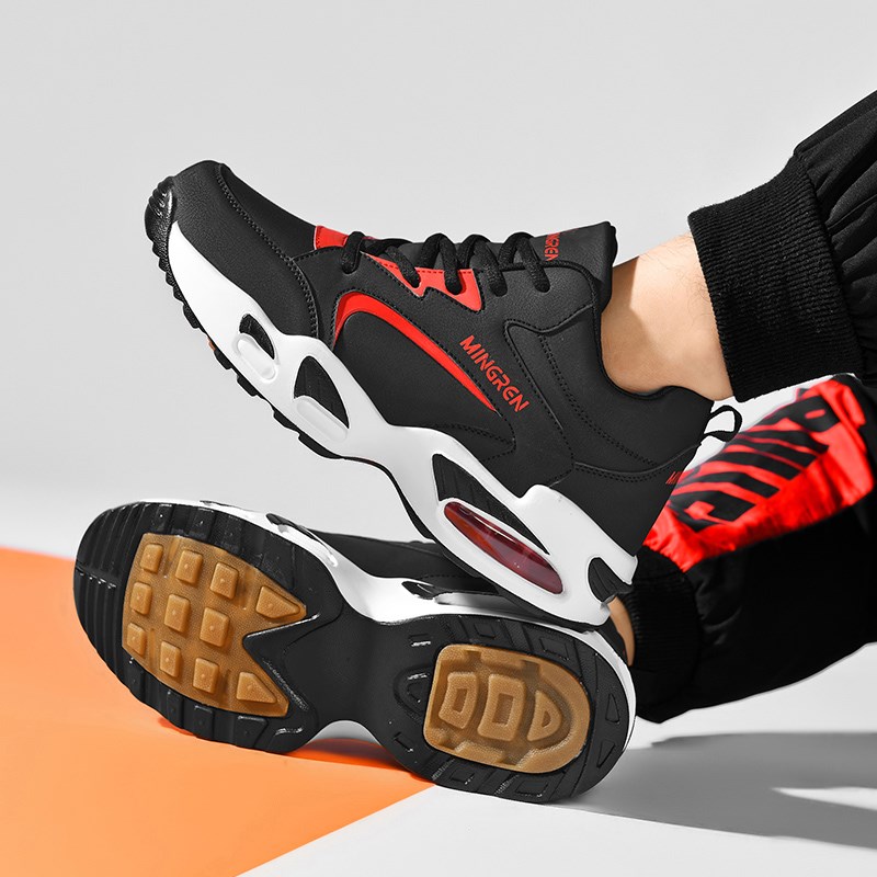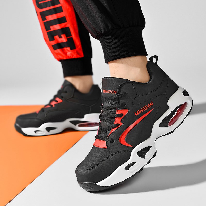 秋冬季2024新款加绒棉鞋男鞋气垫减震皮面潮流百搭学生跑步运动鞋