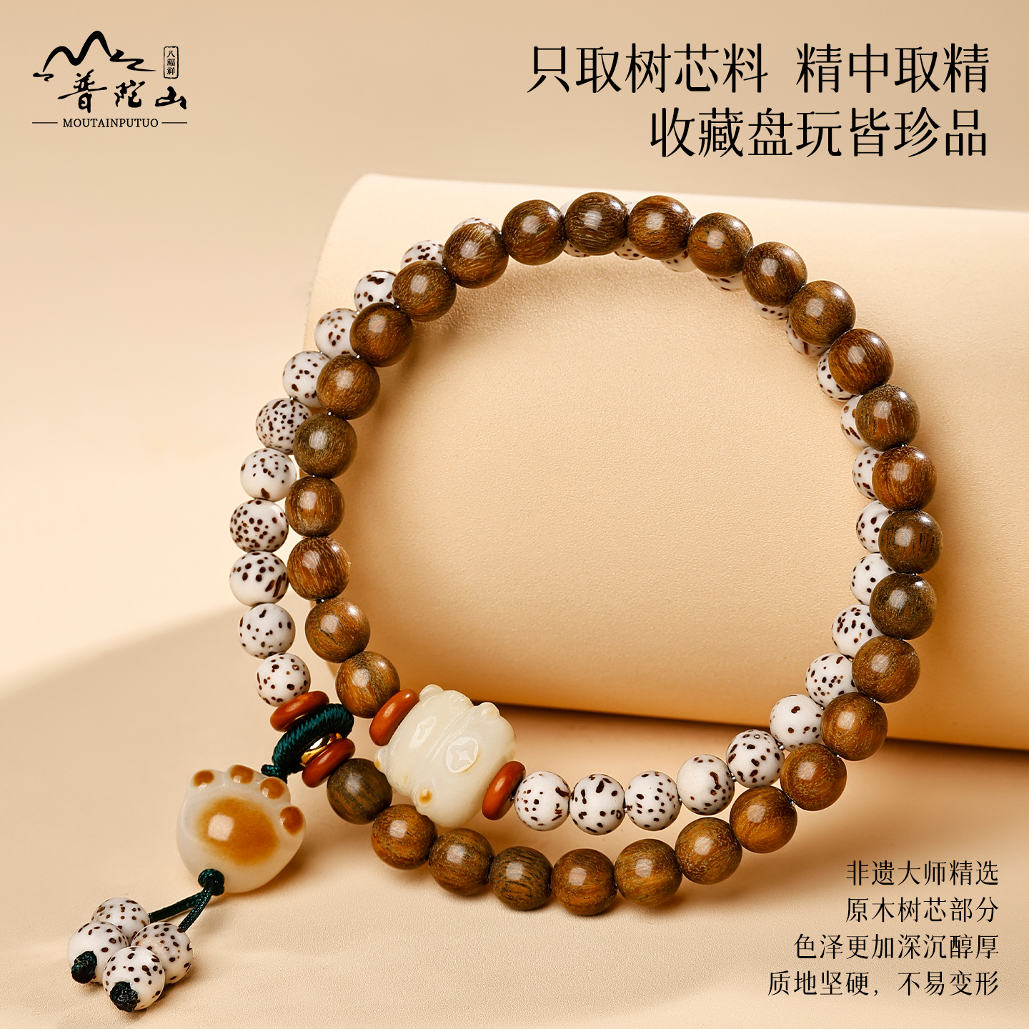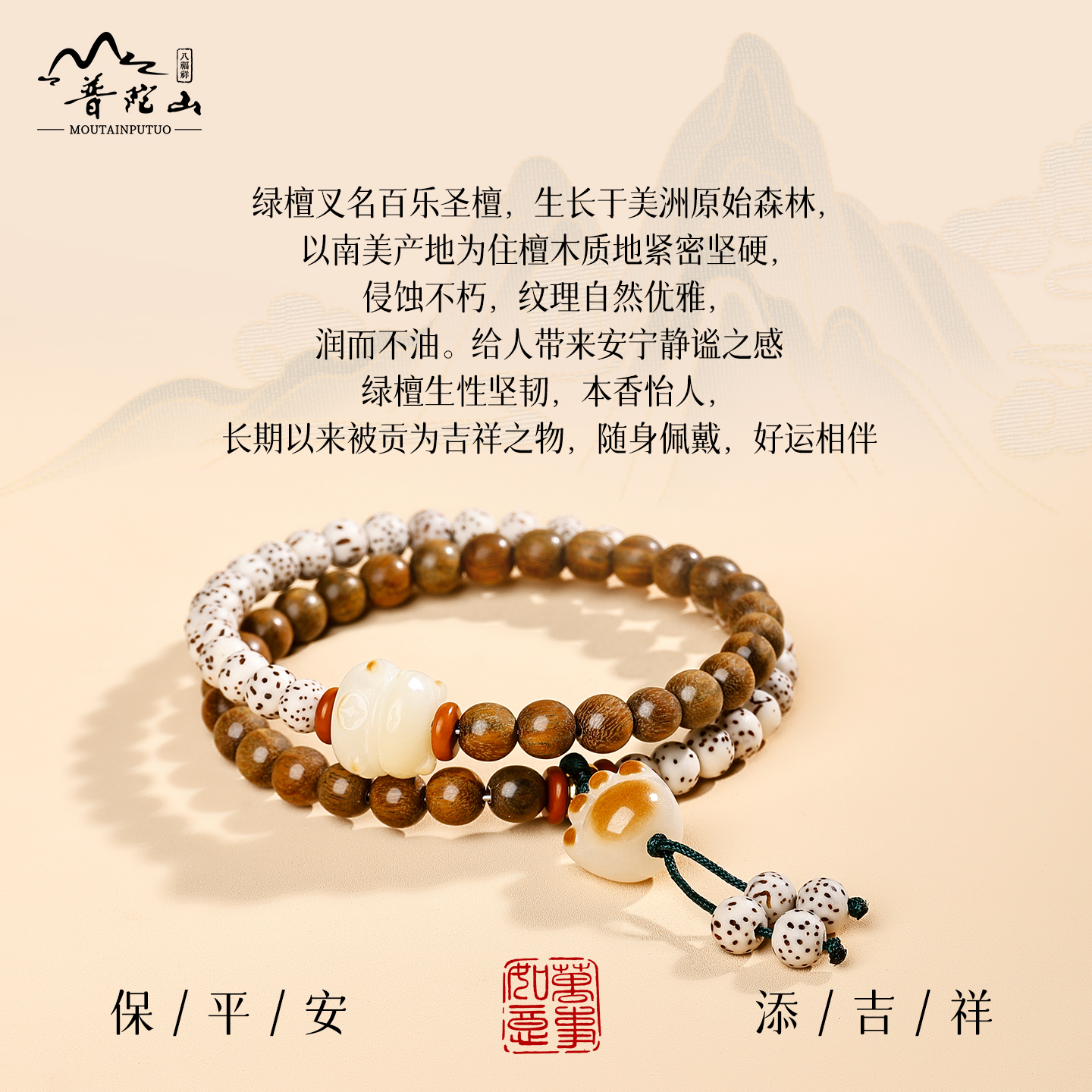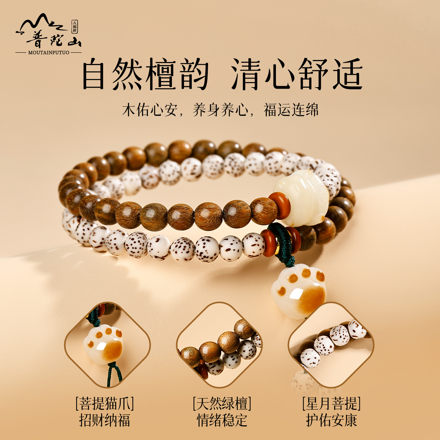 普陀山绿檀星月菩提双圈手串女文玩佛珠念珠平安转运珠手持礼物男