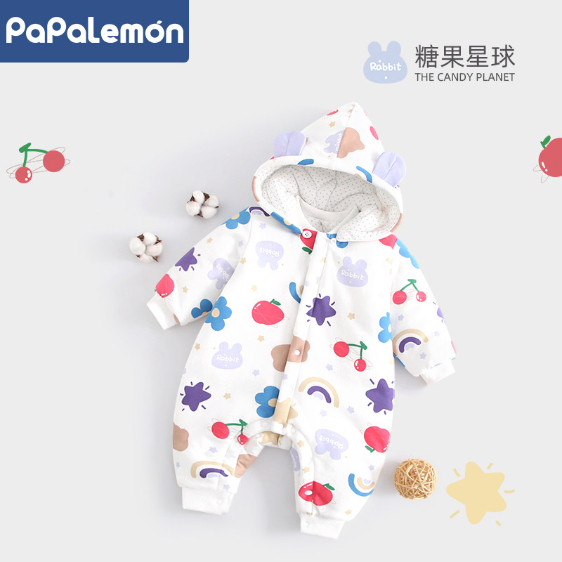 PAPALEMON冬季加厚连帽夹棉哈衣