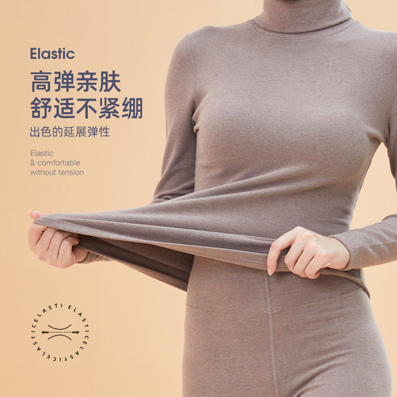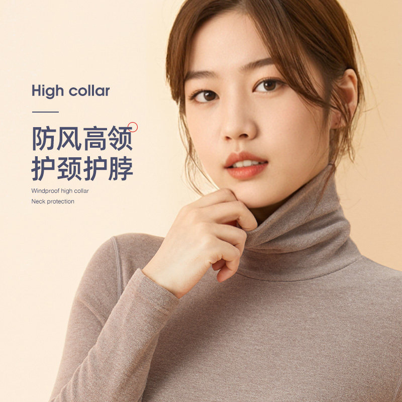 七色纺德绒羊毛保暖内衣女中高领加绒内穿秋衣秋裤套装秋冬季上衣