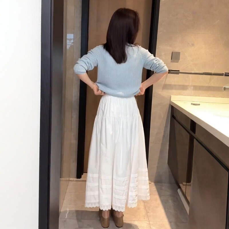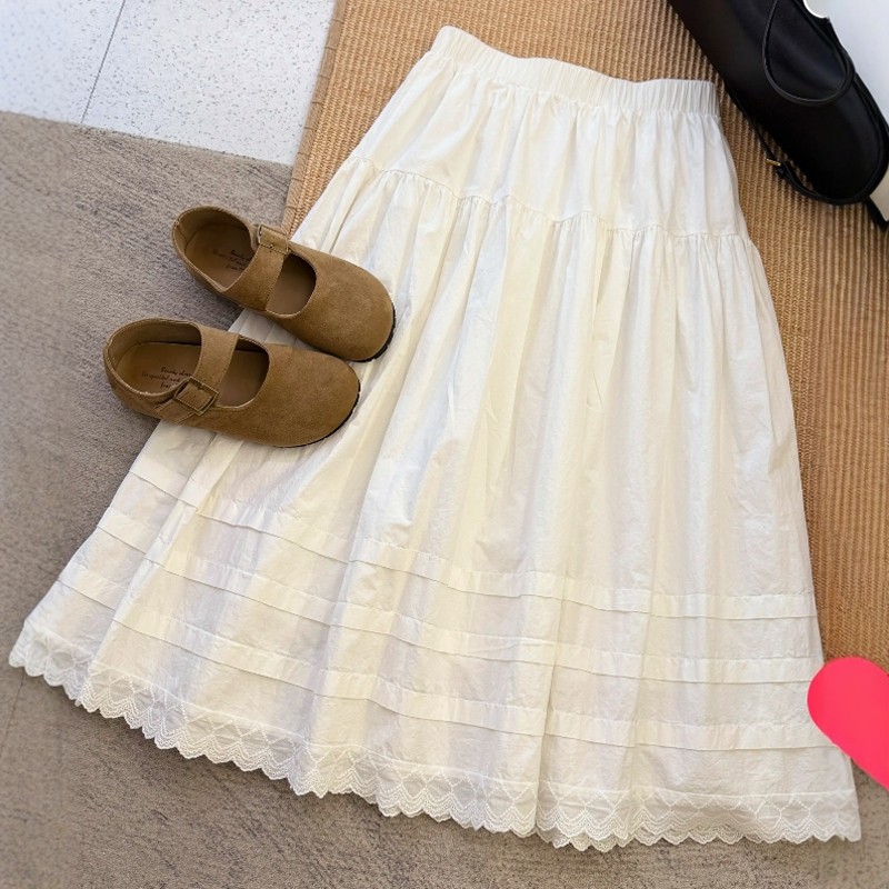 爆款高级感蕾丝花边半身裙女夏装2025新款森系时尚遮肉A字中长裙