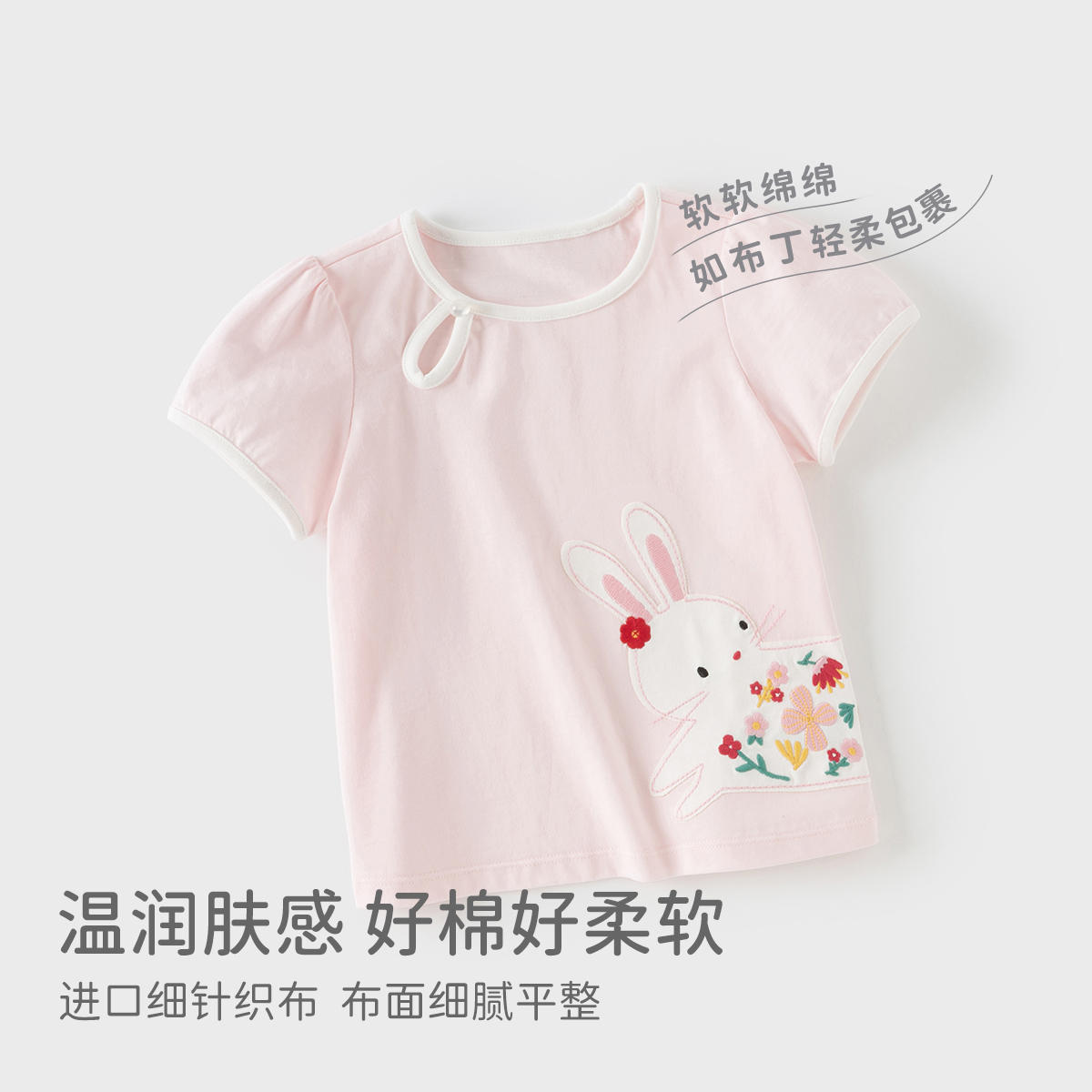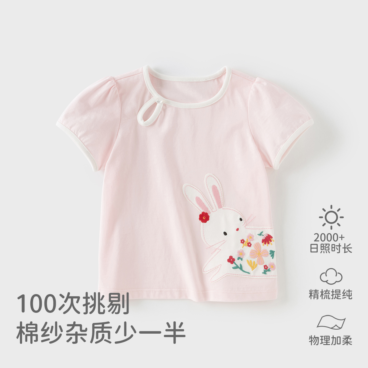 戴维贝拉2025夏装新款女童短袖T恤儿童纯棉上衣宝宝洋气打底衫