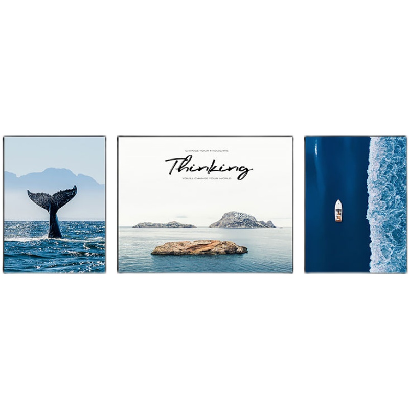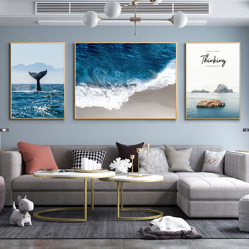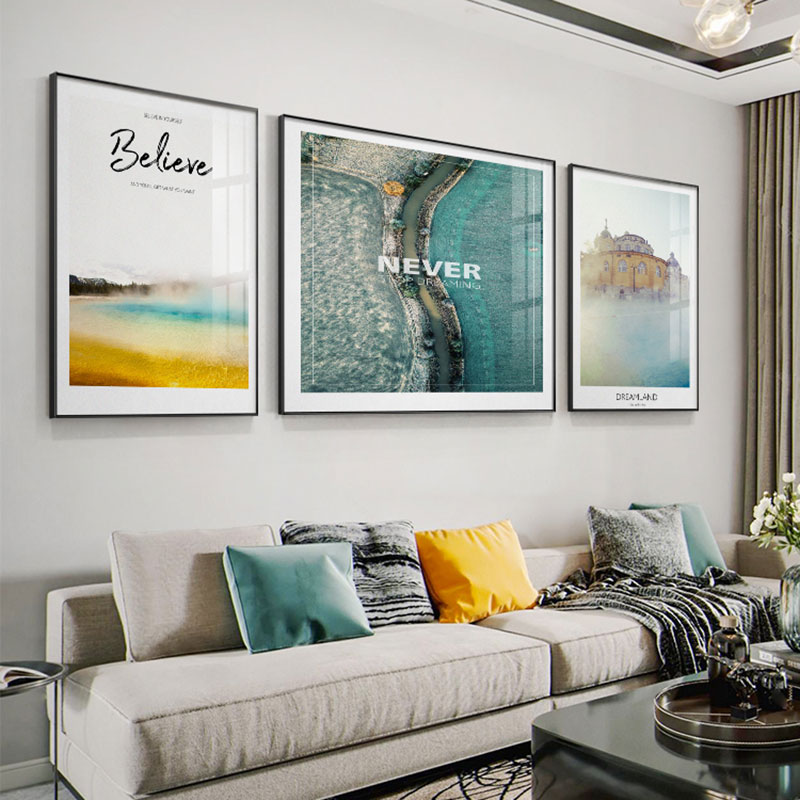 客厅装饰画现代简约沙发背景墙画轻奢海景壁画三联晶瓷画网红挂画