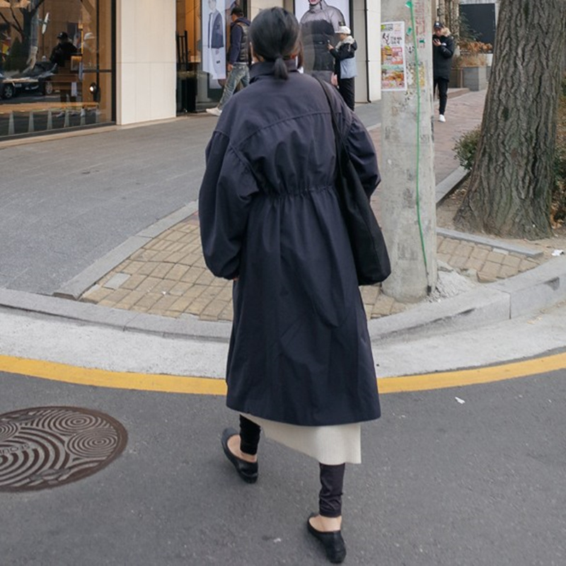 春秋新款抽绳立领风衣女中长款韩版宽松大码时尚休闲收腰风衣外套