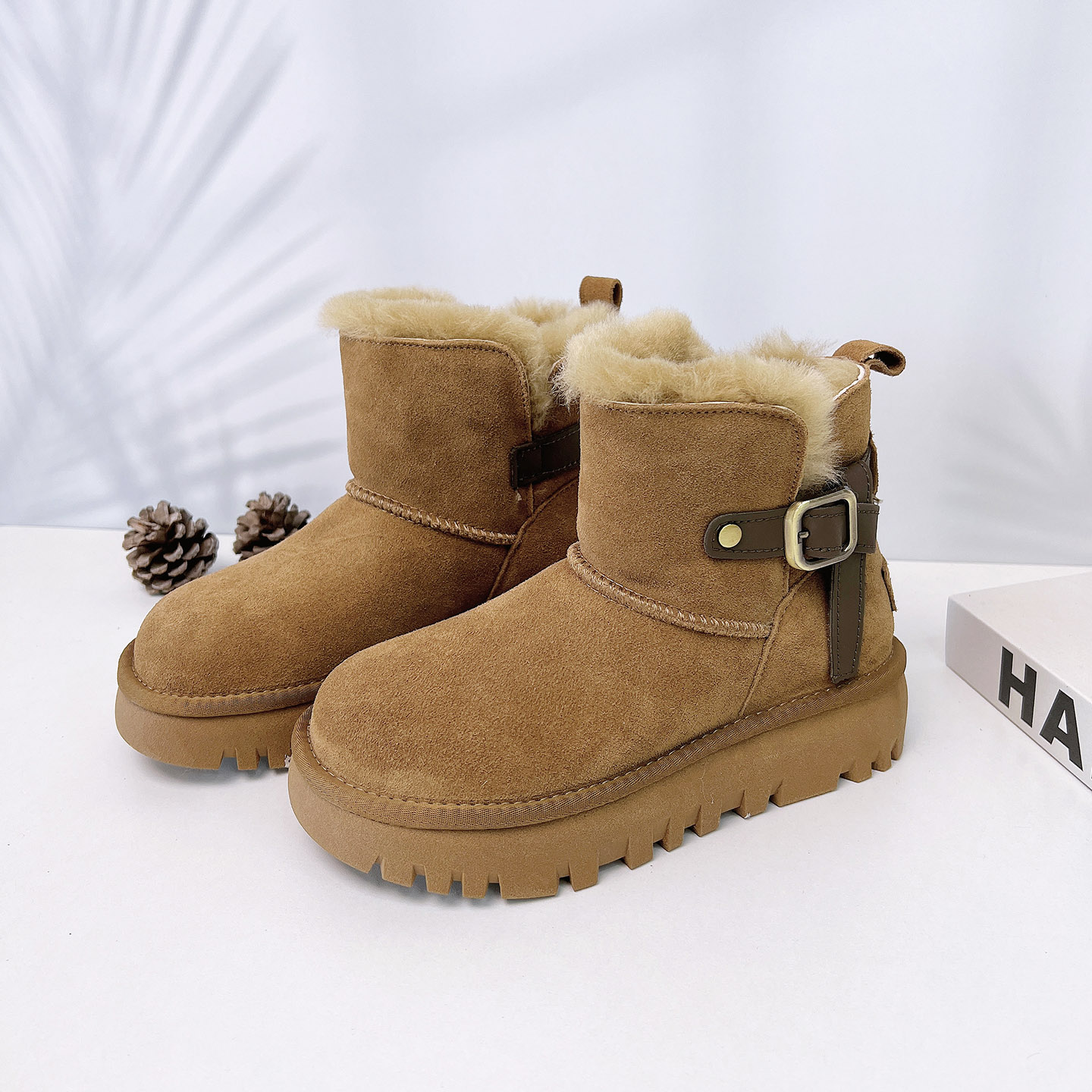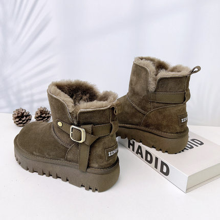 厚底雪地靴女2025新款冬季皮毛一体羊毛短靴防滑东北加厚保暖棉鞋