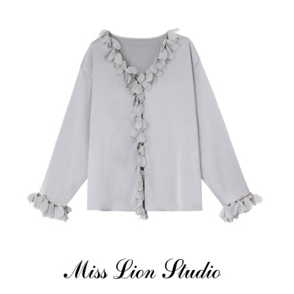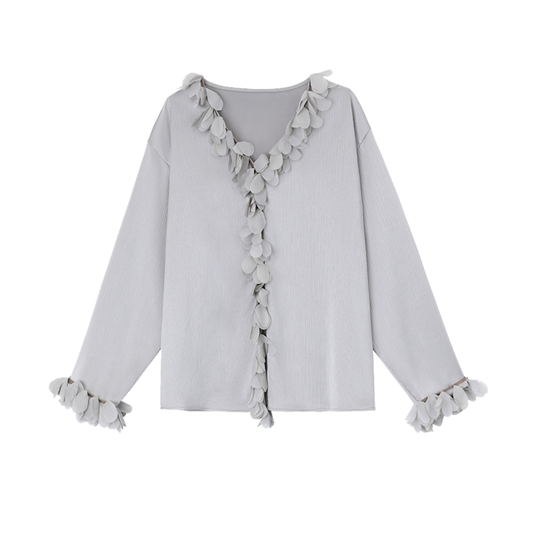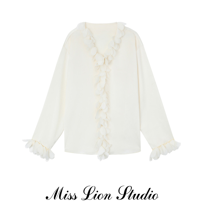 高级感花边V领法式上衣女2024秋季设计宽松气质百搭垂感长袖衬衫