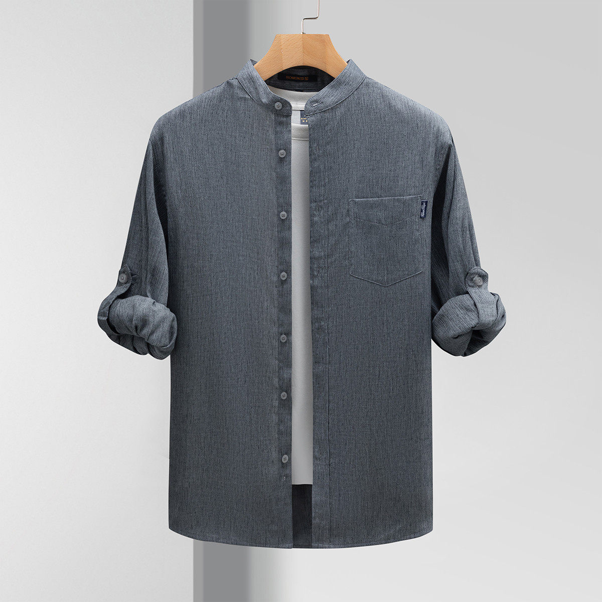 罗蒙立领长袖商务休闲含亚麻衬衫