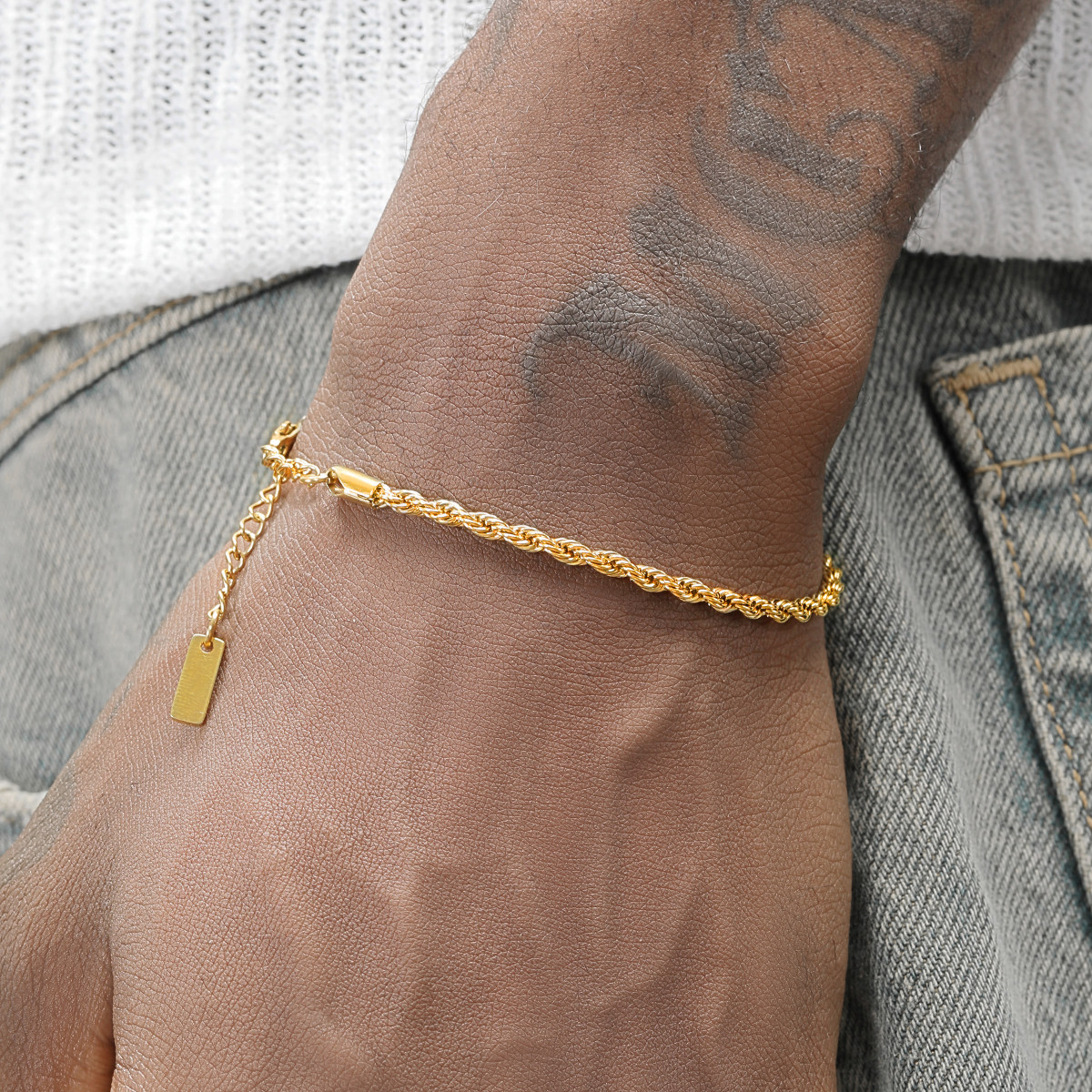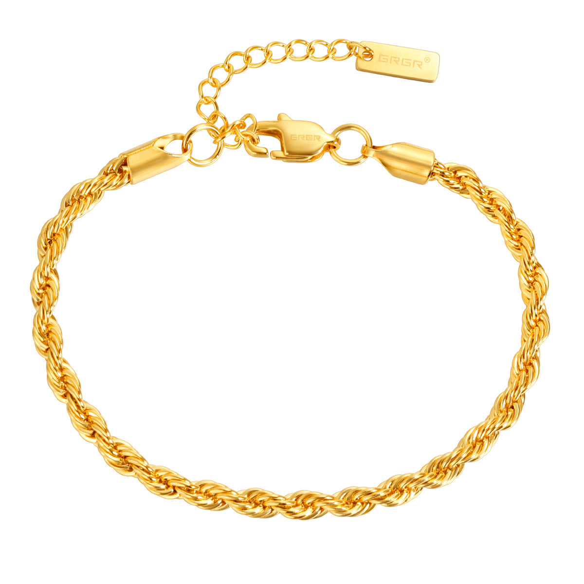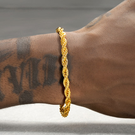 GRGR镀24K真金钛钢手链男嘻哈欧美简约金色编织麻花手链女细款潮