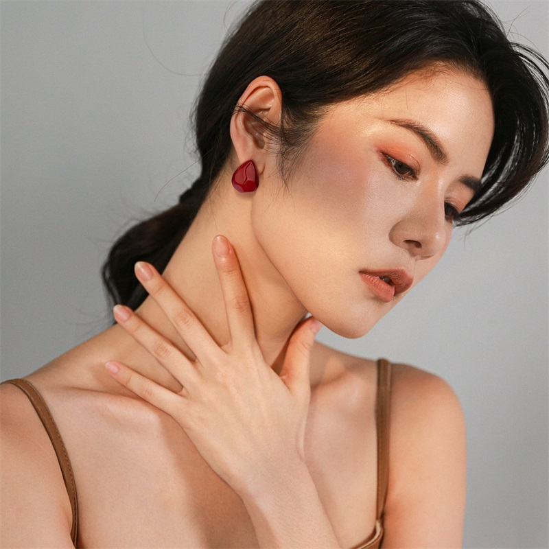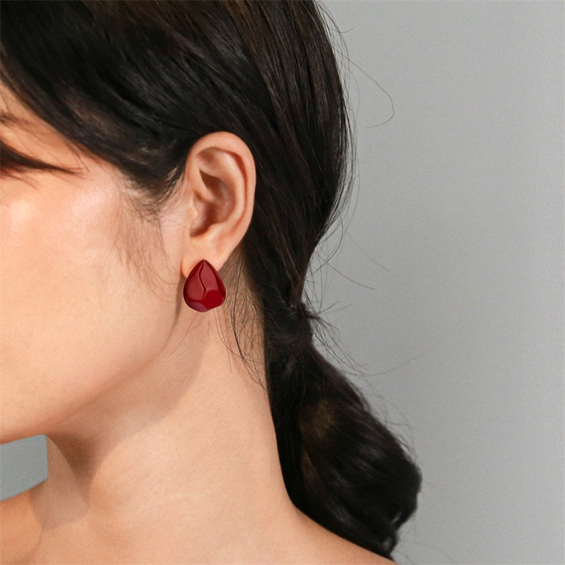 适合夏天的水滴红色耳饰耳钉女纯银耳环2025新款爆款高级感耳坠