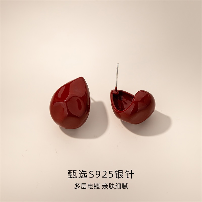 红色水滴复古女S925银针