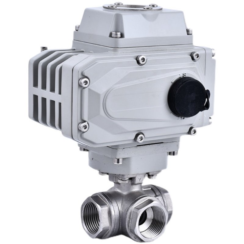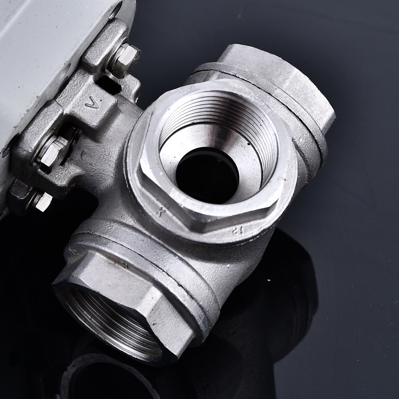 304不锈钢电动三通球阀Q614/5F-16P丝扣三通阀T型L型电动球阀4分