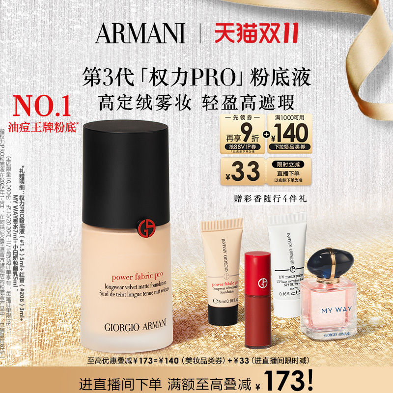 【百亿补贴】阿玛尼权力PRO红标粉底液绒雾质感混油遮瑕礼物