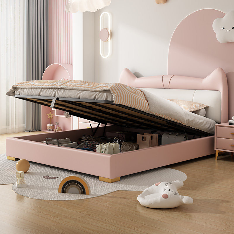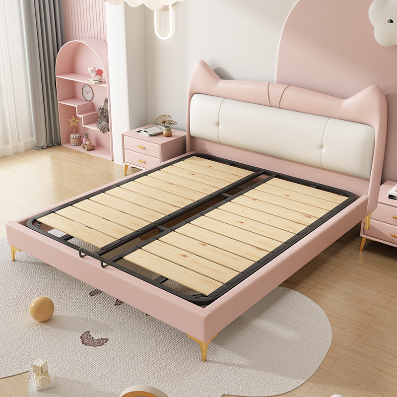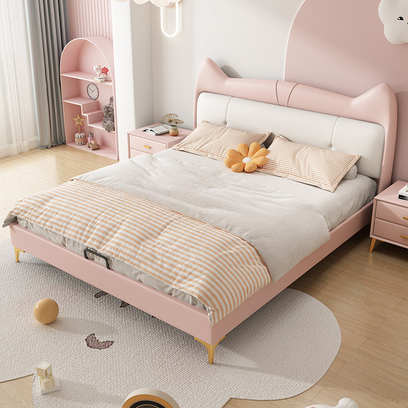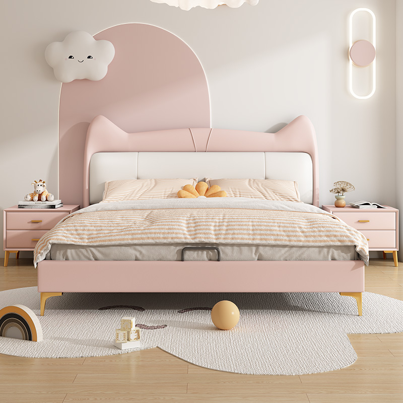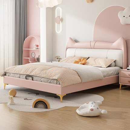 佐慕猫耳朵女生真皮儿童床