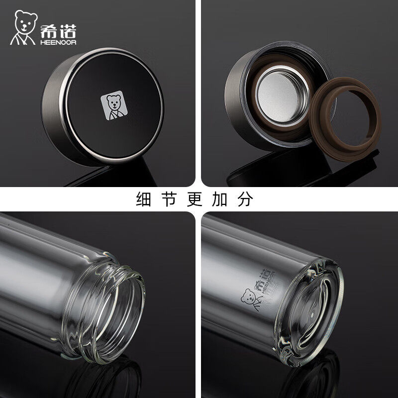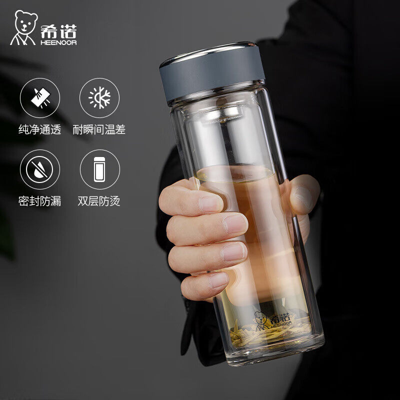 希诺玻璃杯双层隔热防烫商务泡水杯礼盒男士办公室泡茶杯刻字