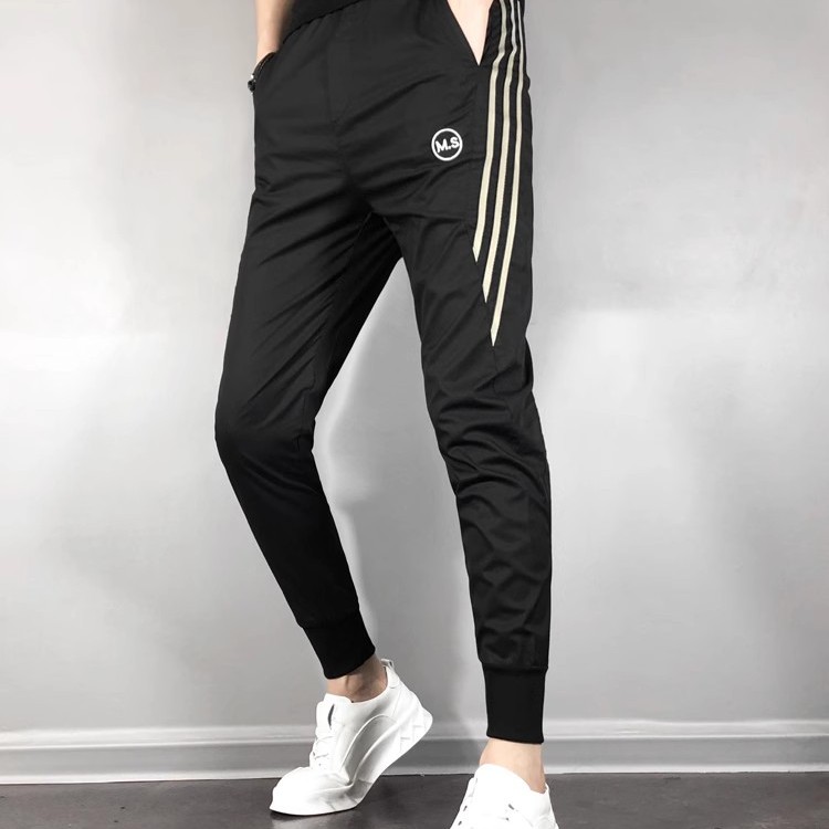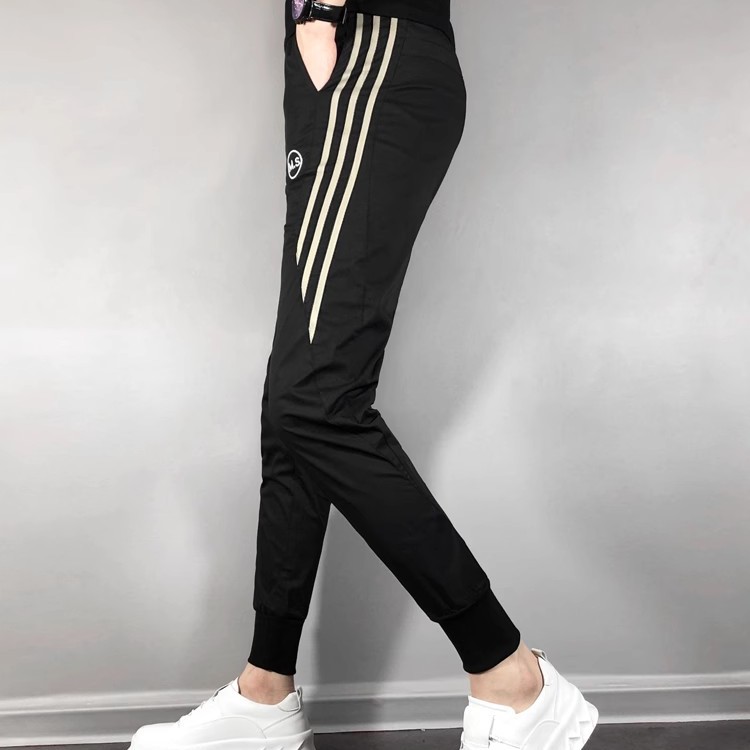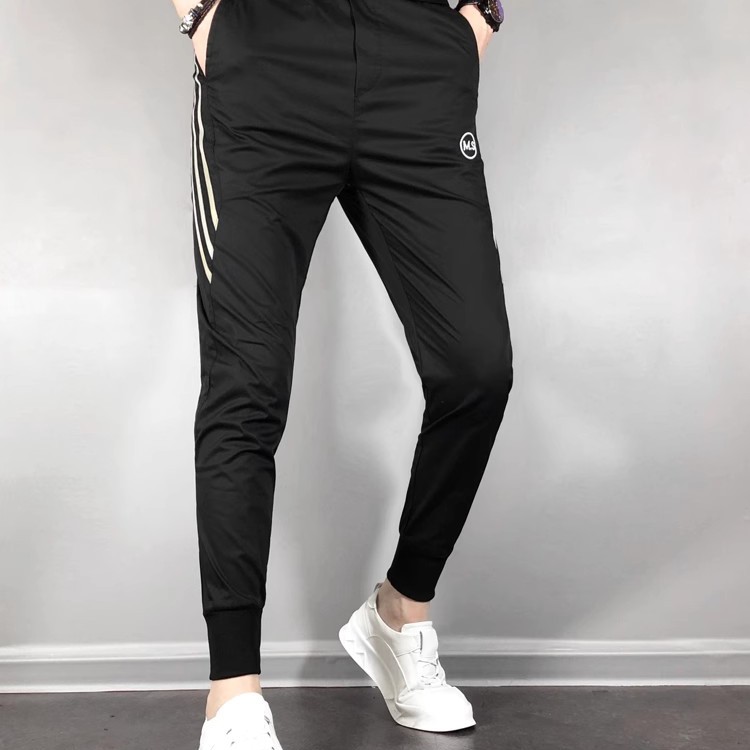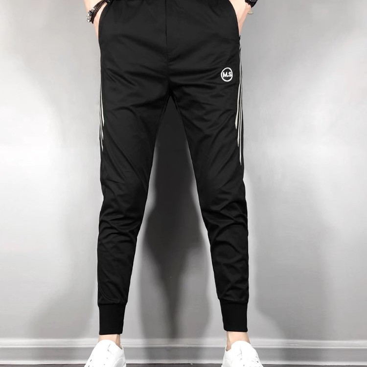 春秋季新款男士小脚休闲裤弹力运动裤潮流黑色修身束脚九分哈伦裤