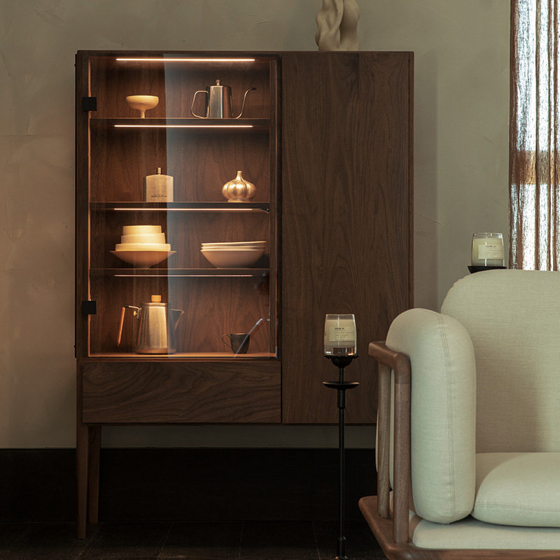 梵几|玻璃柜橱 现代实木酒柜餐边柜带灯手办展示柜客厅储物柜轻奢