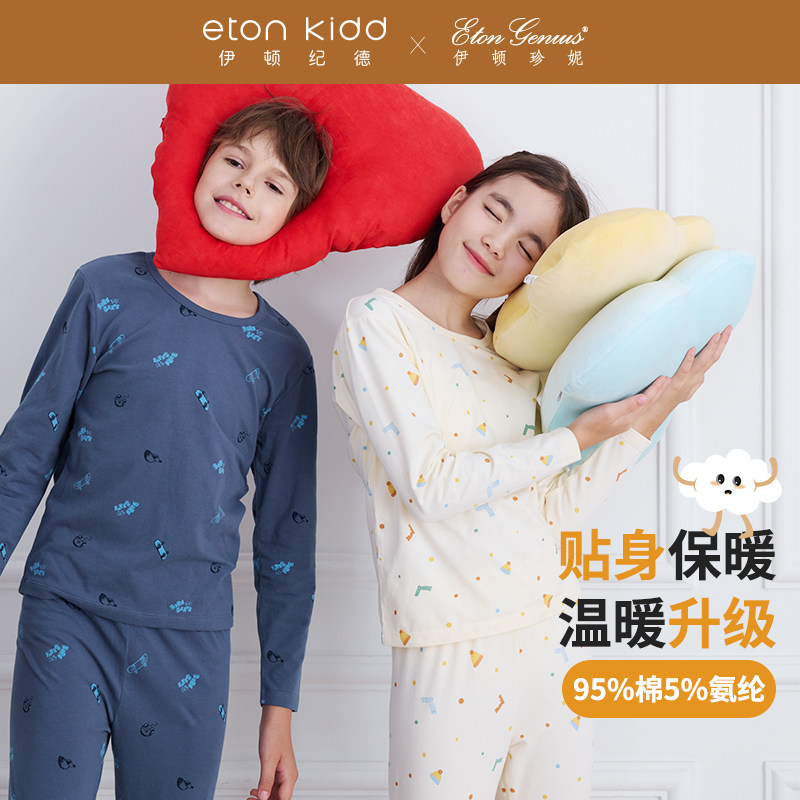 伊顿纪德旗下伊顿珍妮新男女童学院长款家居服套装儿童春秋25Y901