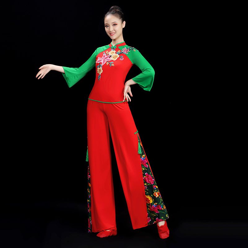 秧歌服演出服女2022新款中老年跳舞衣时尚广场舞套装民族舞蹈服装