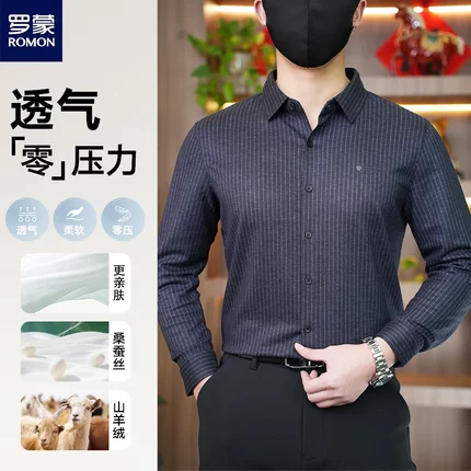 罗蒙男装春季男士时尚休闲条纹衬衫新款高档轻奢高弹柔软透气衬衣