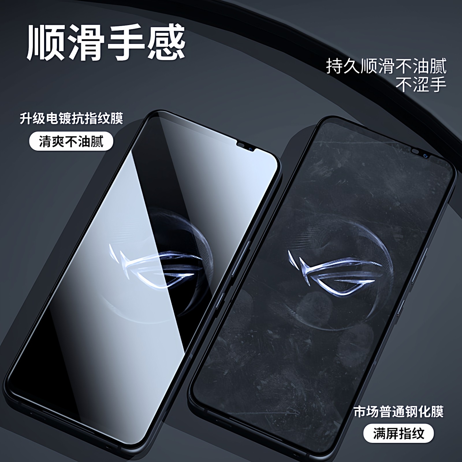 灰锐 适用华硕rog9钢化膜Rog 8游戏手机7电竞6d电镀疏油层5s pro防指纹黑边磨砂全屏覆盖玻璃防爆摔保护贴膜