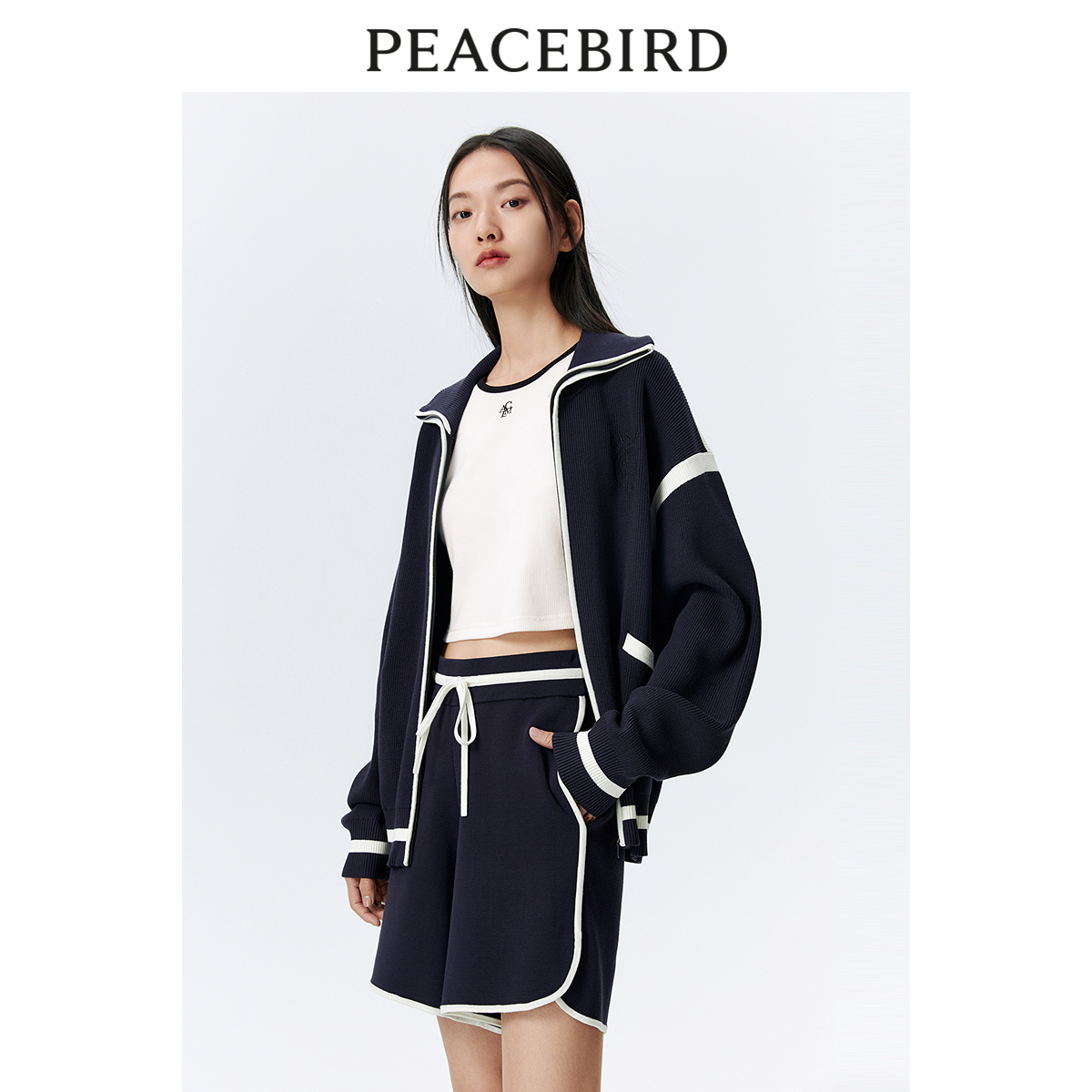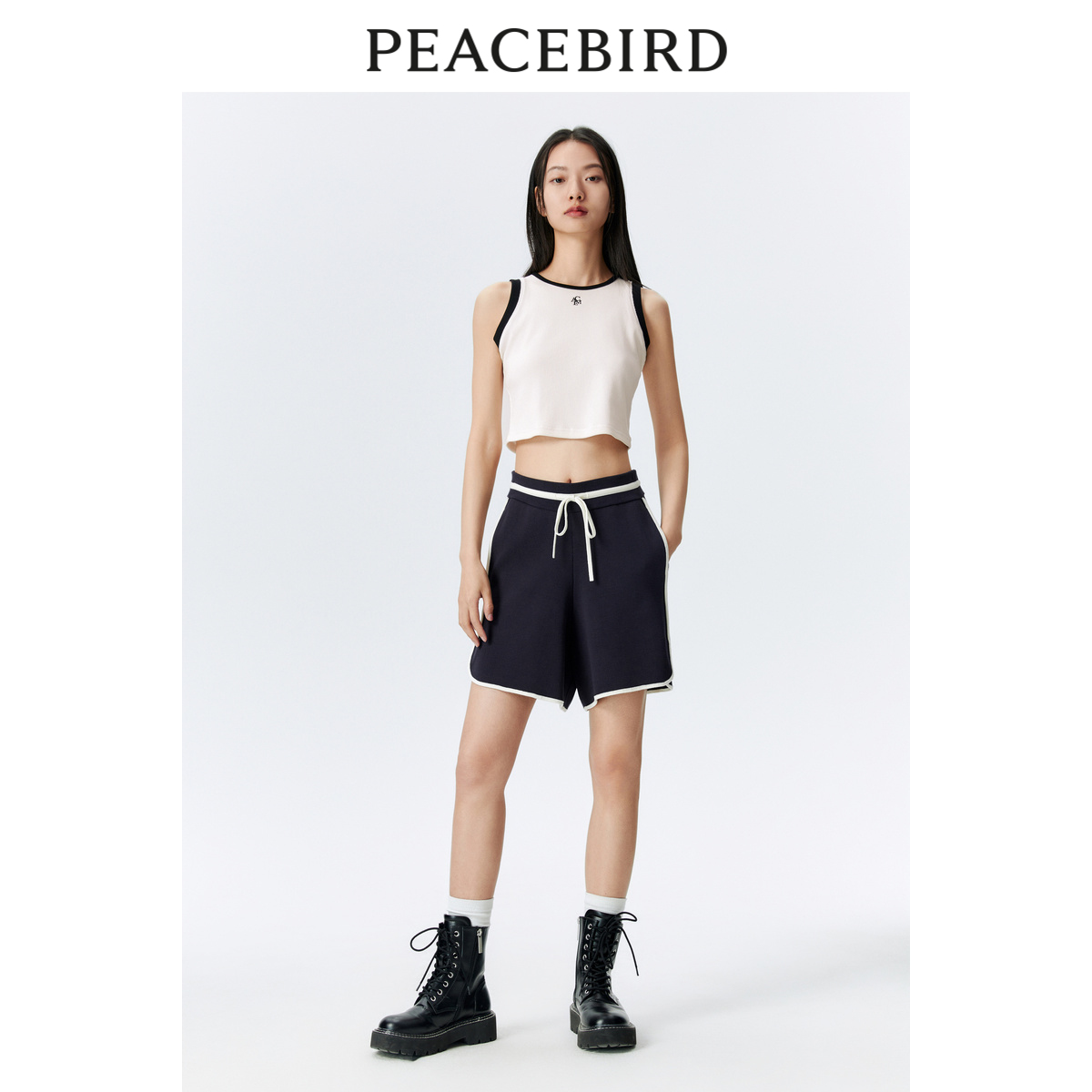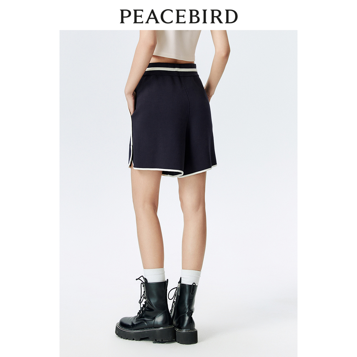 太平鸟新款撞色运动阔腿休闲短裤