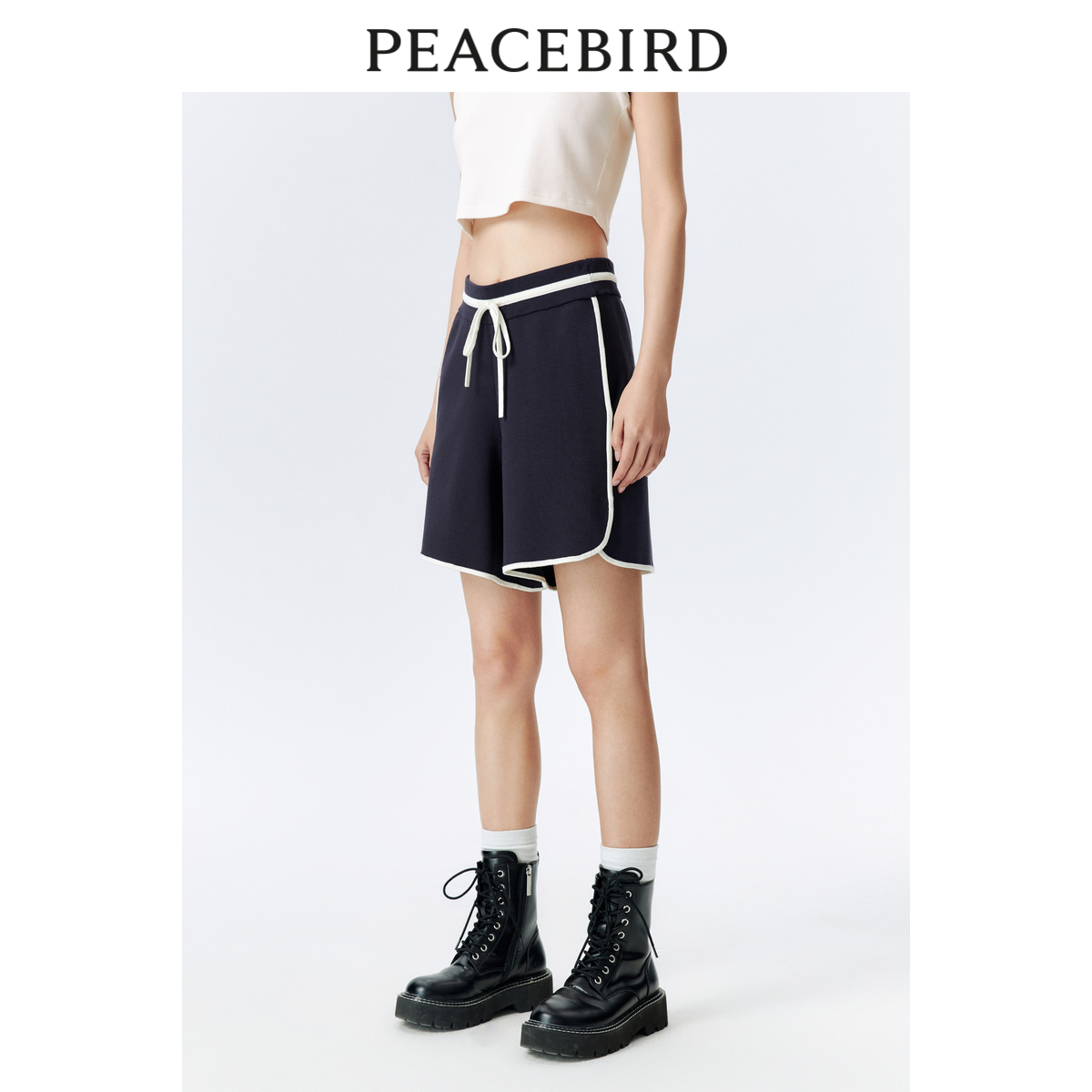 太平鸟撞色线运动短裤春季新款高腰宽松显瘦阔腿休闲短裤女