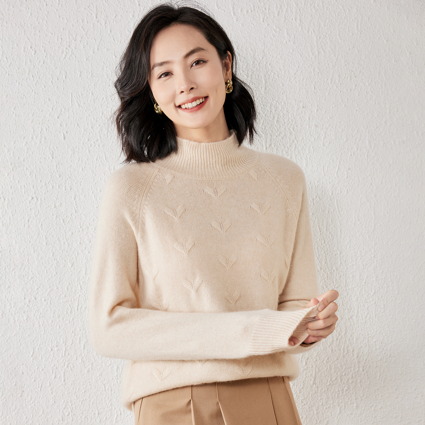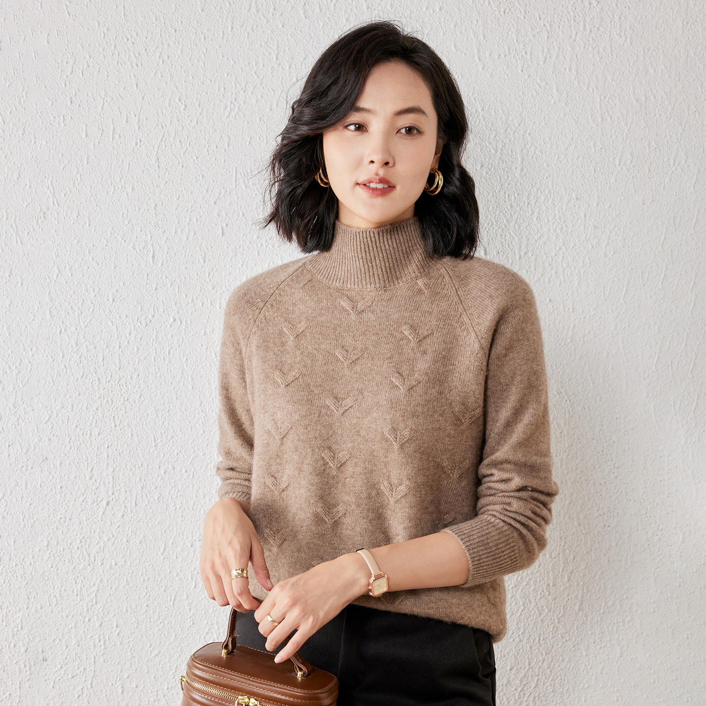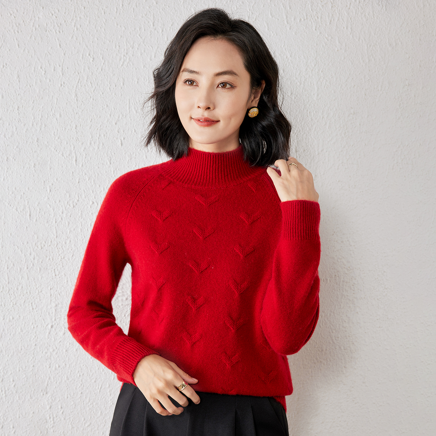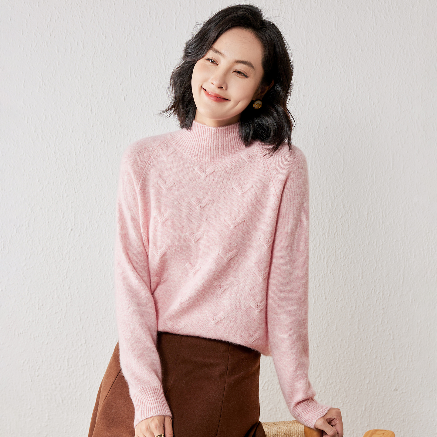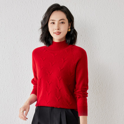京绒羊2025秋冬半高领100%纯羊毛衫女士宽松显瘦气质加厚毛衣上衣