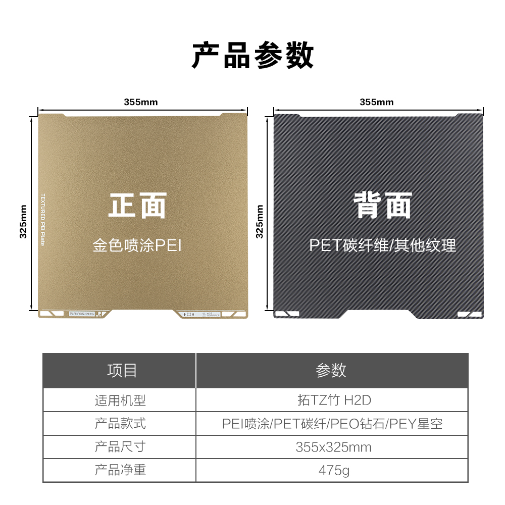 3D打印机拓竹h2d h2s双面PEI打印板纹理贴膜磁性弹簧钢热床板