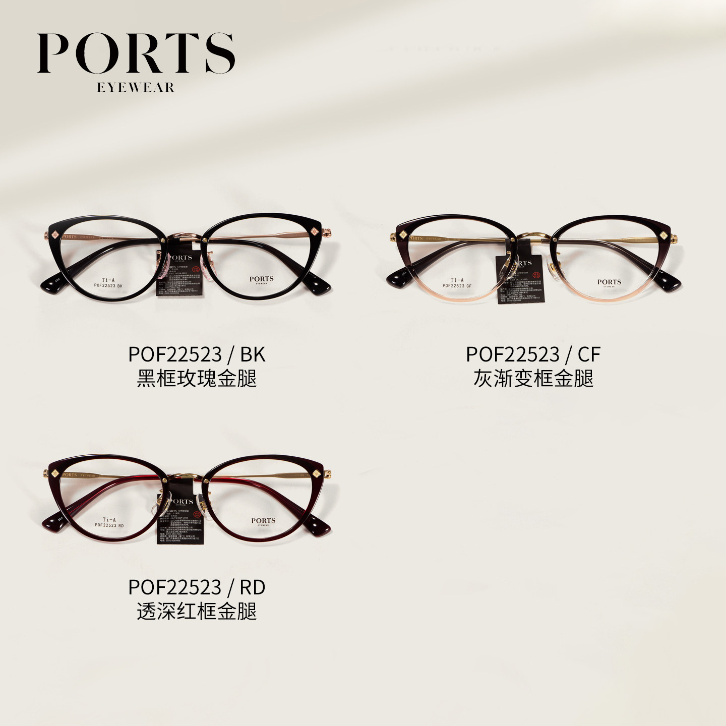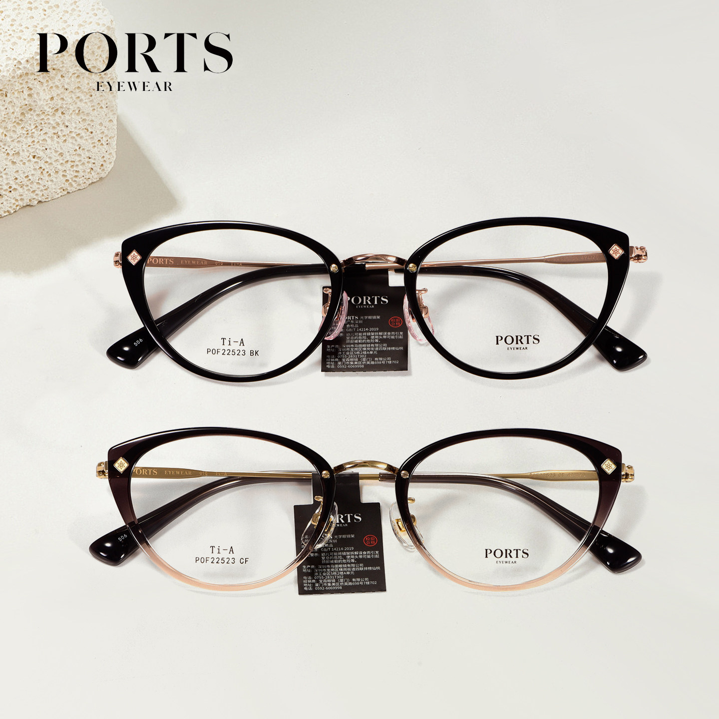 PORTS猫眼全框时尚百搭修颜高度数可配镜片简约气质超轻POF22523