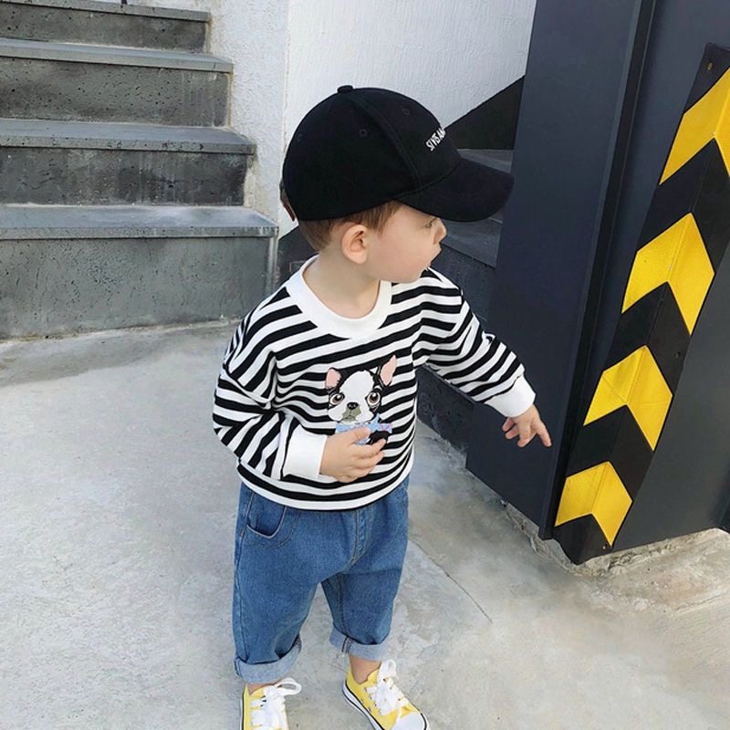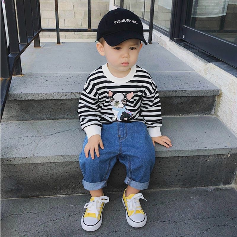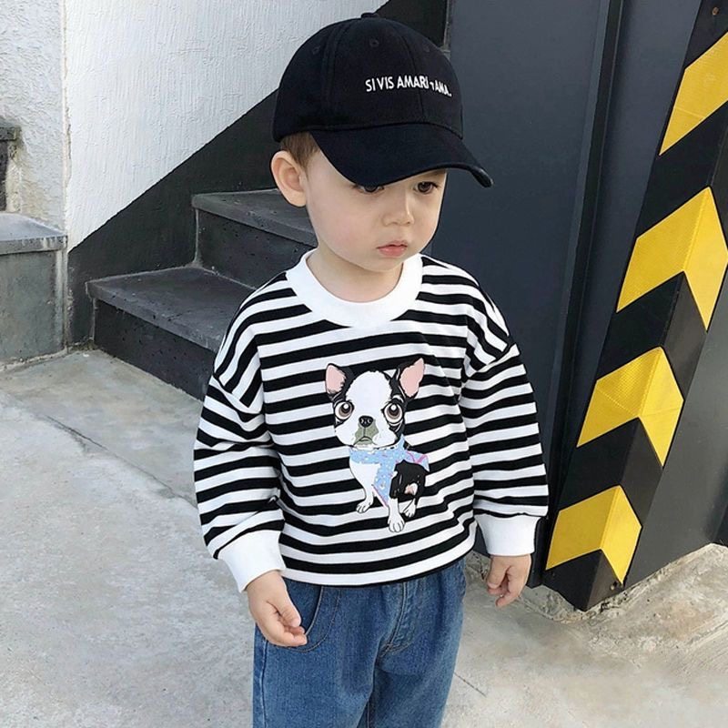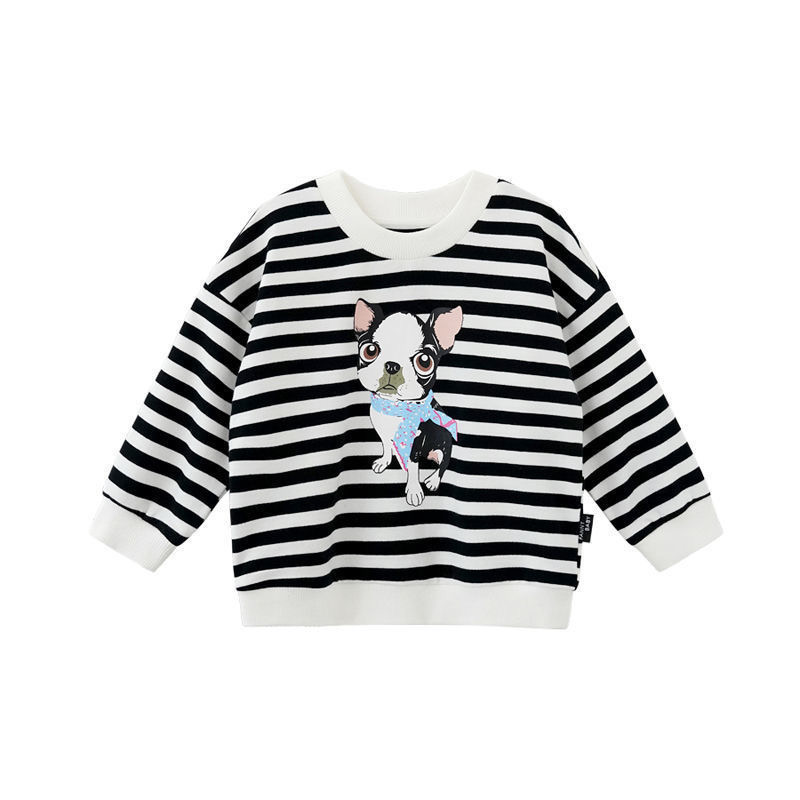 小童春秋男宝宝卡通条纹加绒卫衣男女童圆领长袖网红T恤新款卫衣