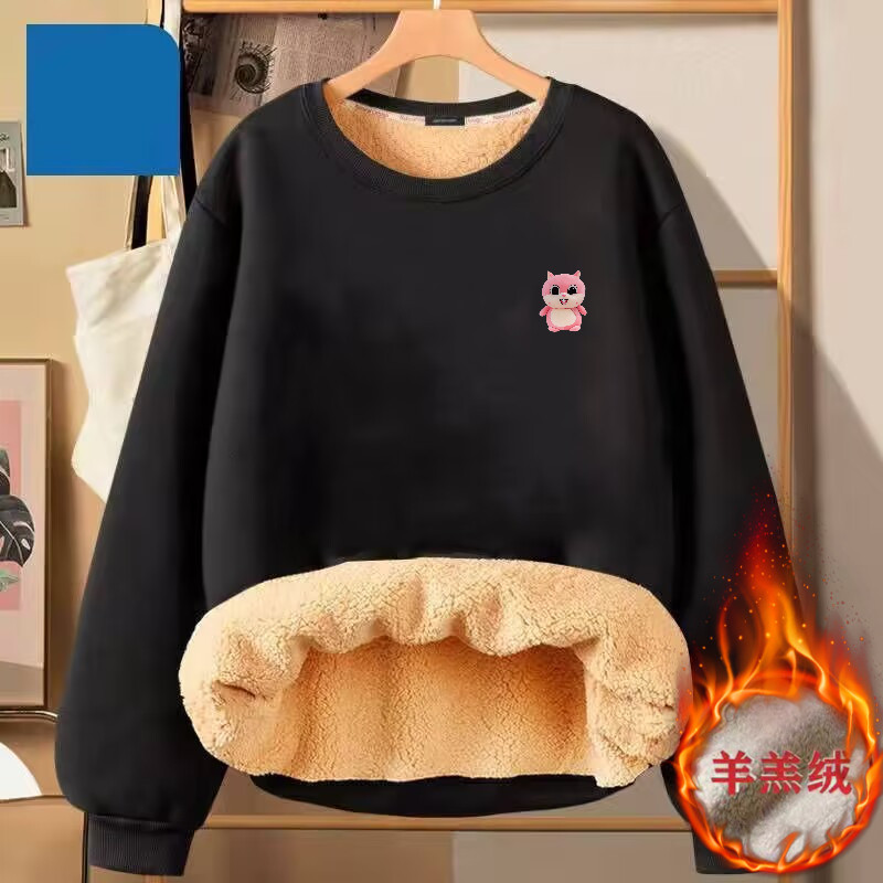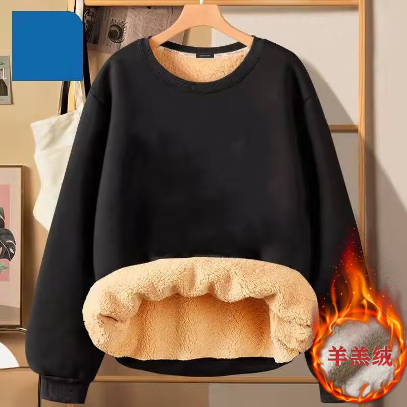 秋冬季女士加绒加厚羊羔绒卫衣圆领套头加大码宽松百搭保暖上衣女