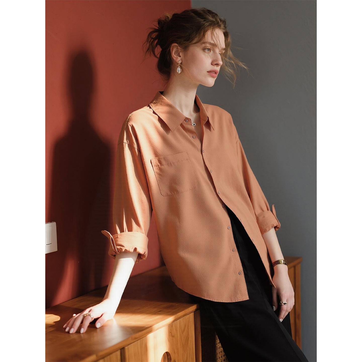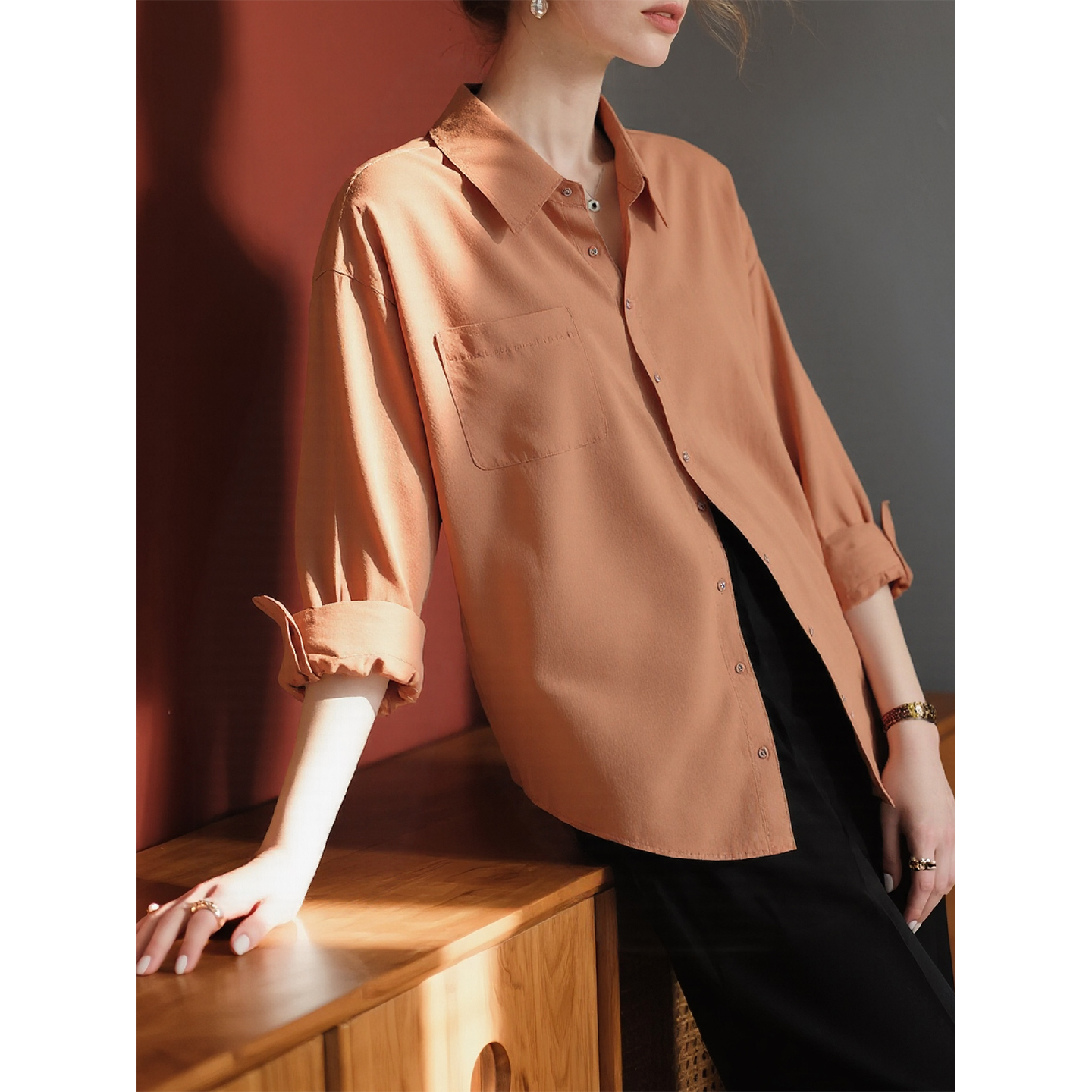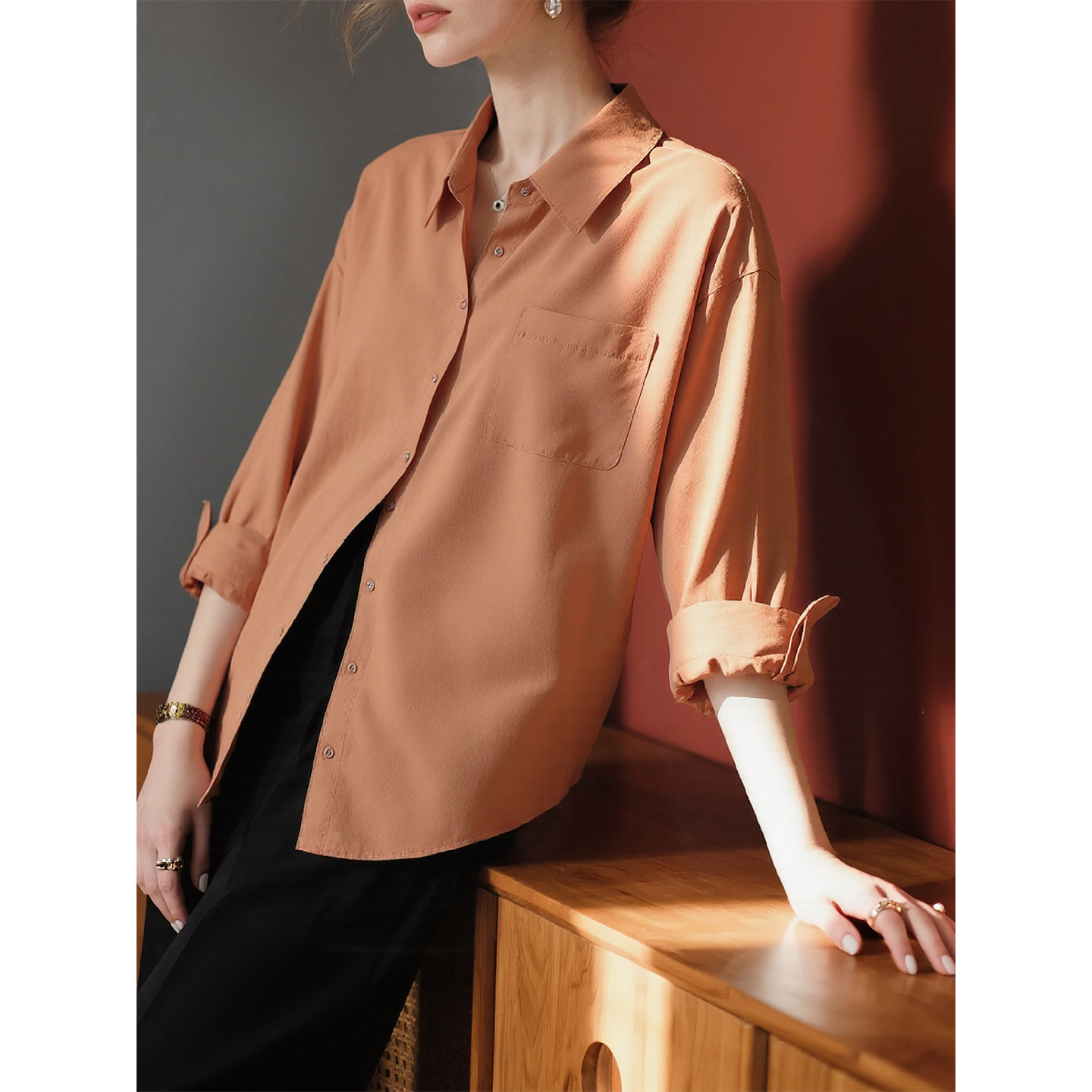 橘色莱赛尔天丝亚麻长袖衬衫女2025年秋季新款法式高级感衬衣上衣