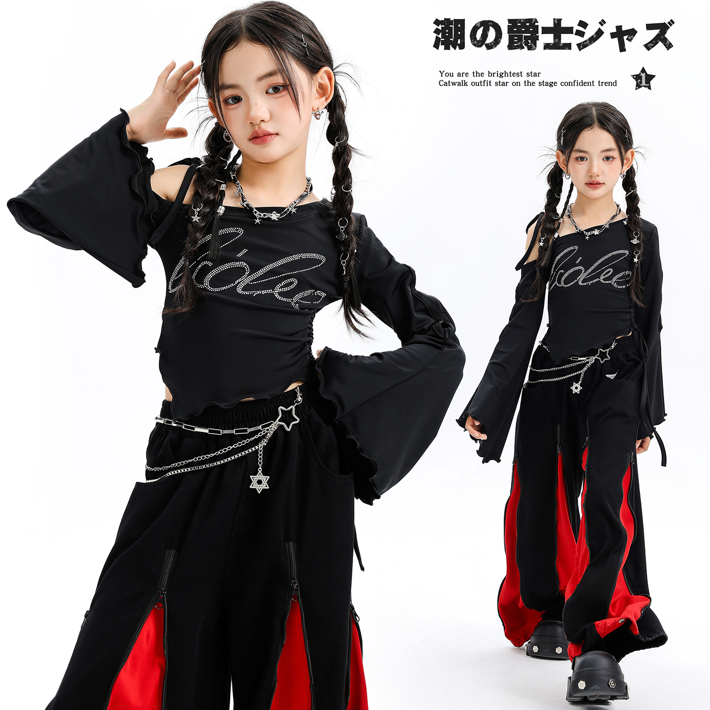 美式儿童喇叭袖爵士舞走秀拍摄演出服女童嘻哈JAZZ元旦表演服套装