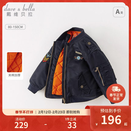戴维贝拉儿童外套冬装新款男童棒球服男孩飞行员夹克加厚棉服童装