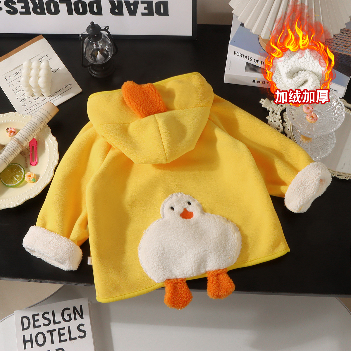 儿童外套加厚奥粒绒连帽秋冬宝宝加绒上衣冬装男童衣服女童童装潮