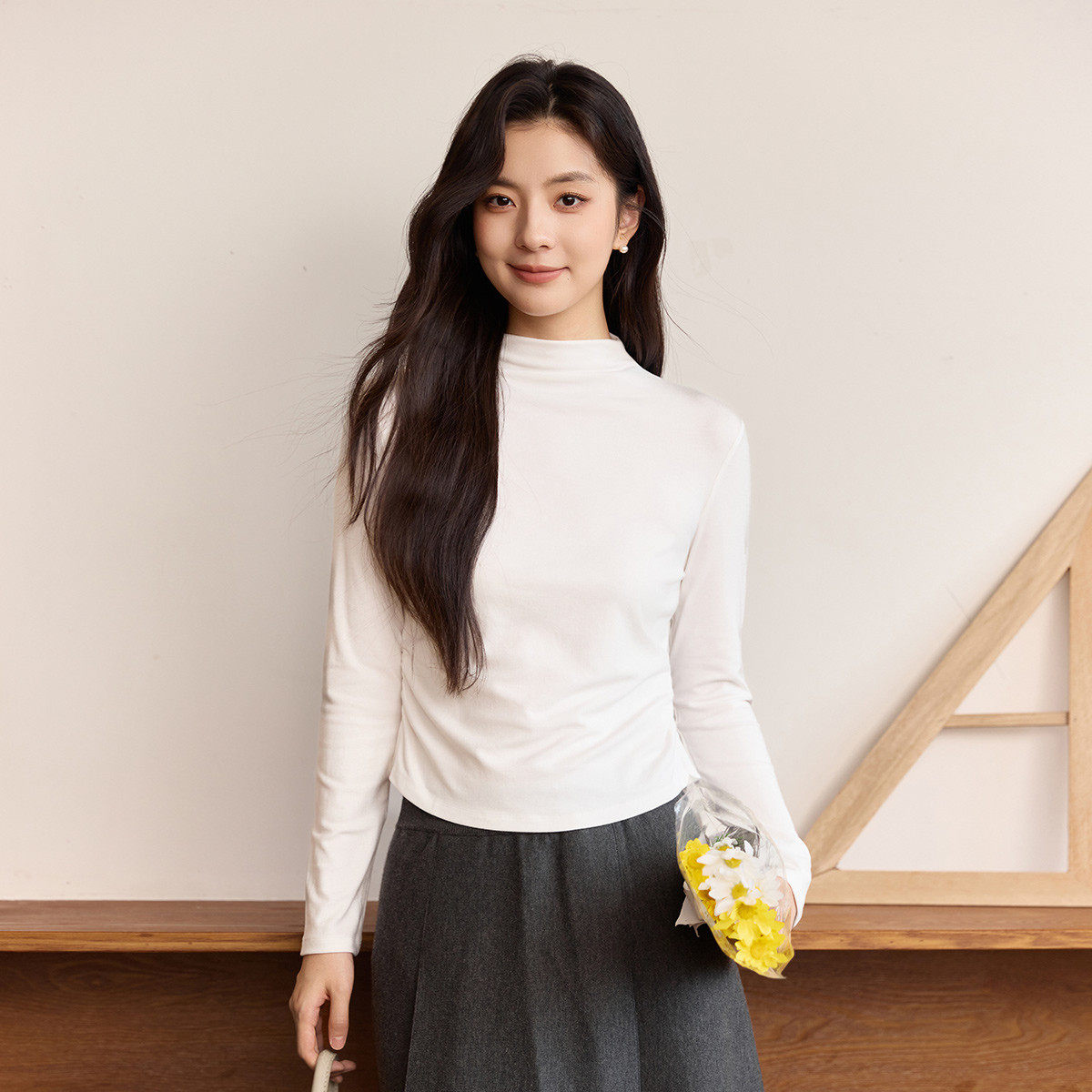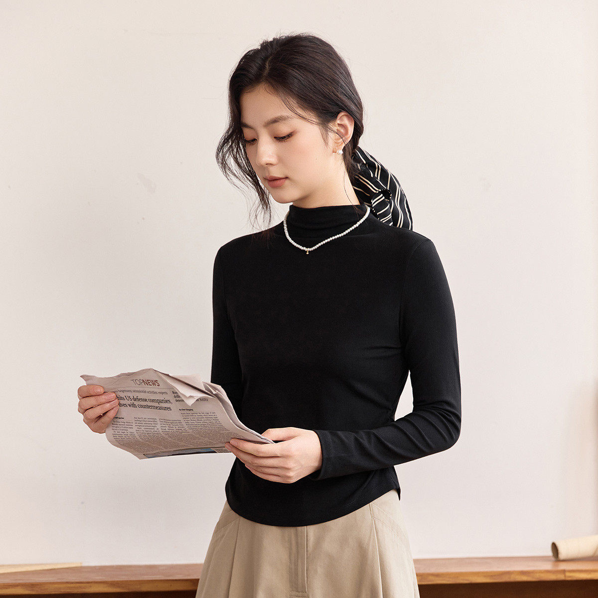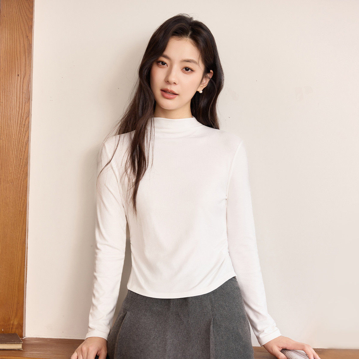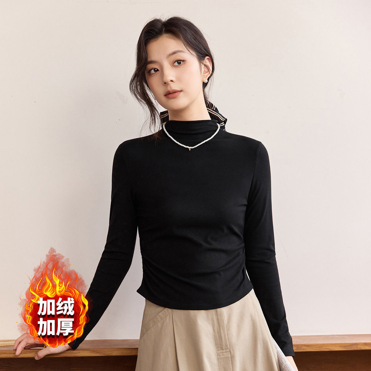 茵曼2025冬季新款加绒加厚保暖长袖t恤女士正肩内搭打底衫修身