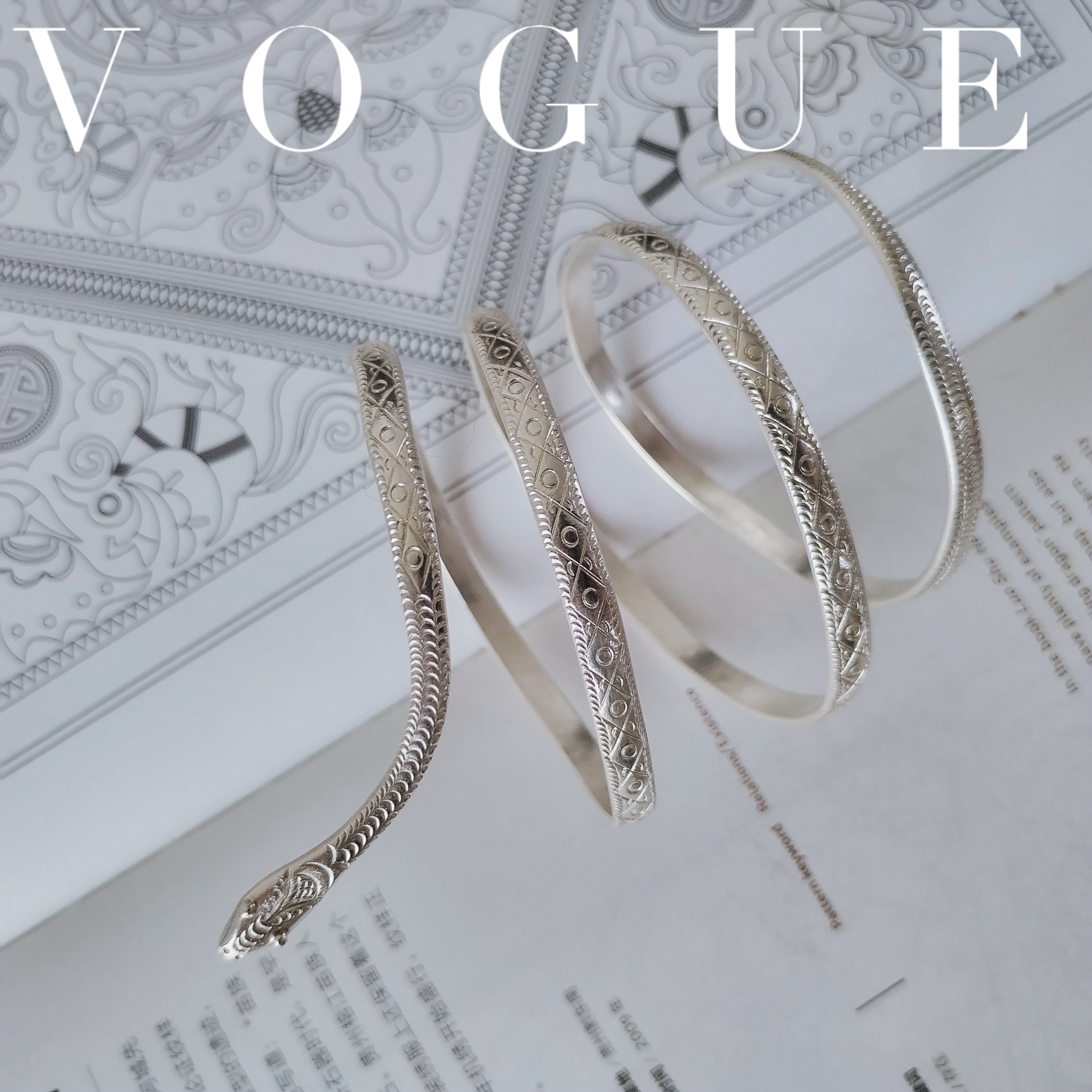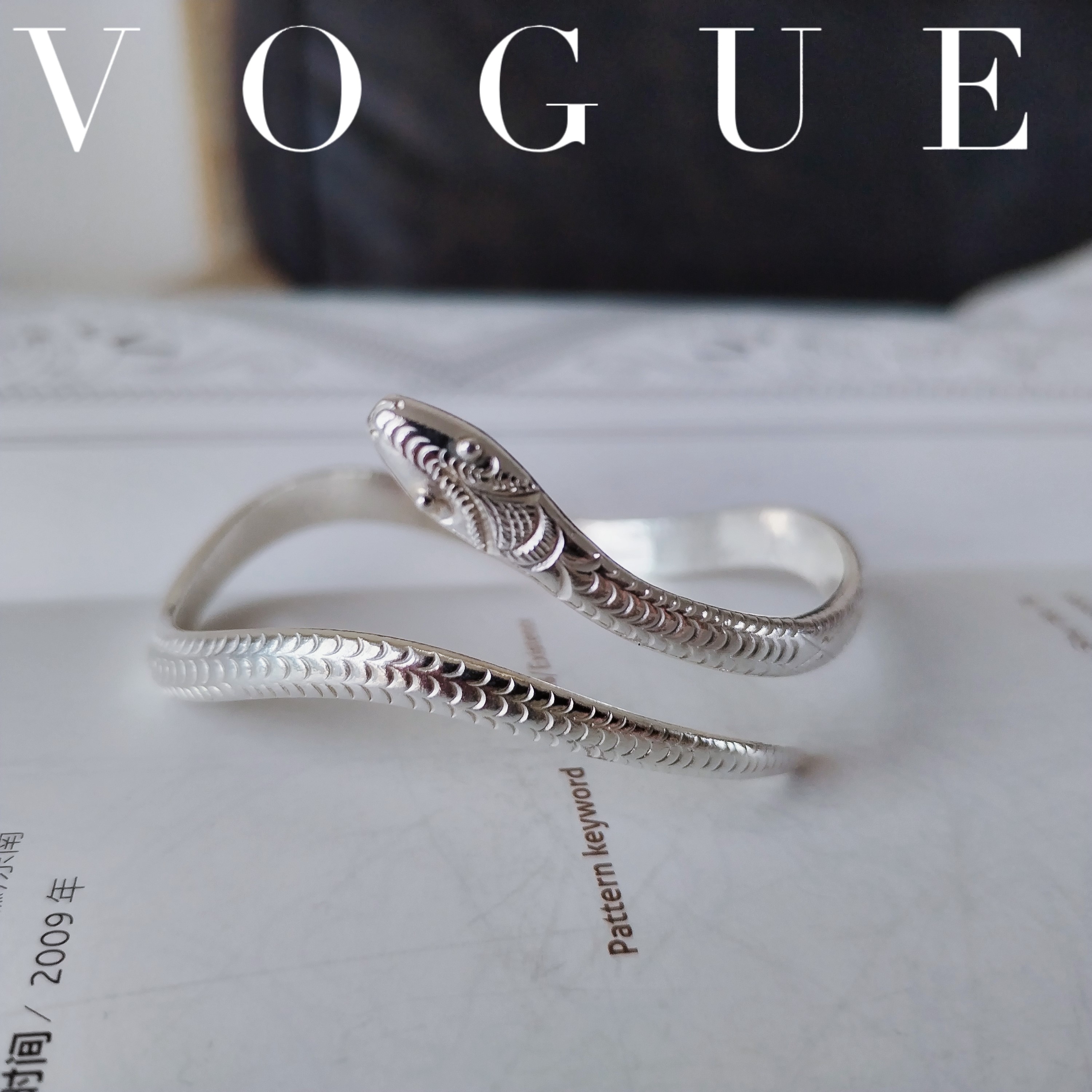 月如银 | 纯手工原创设计999足银蛇形手镯胜赏须倾竹叶青可做臂镯