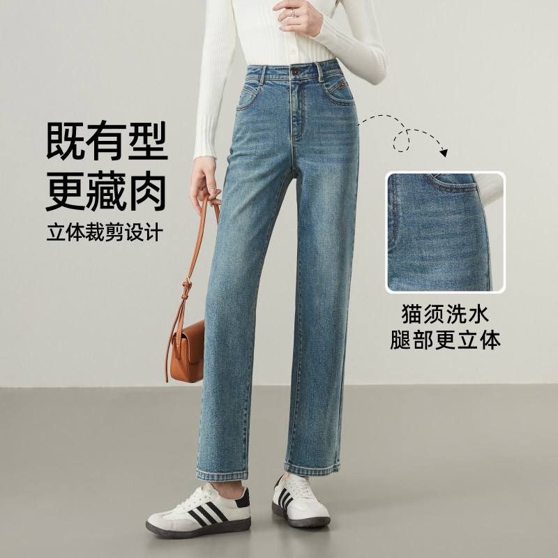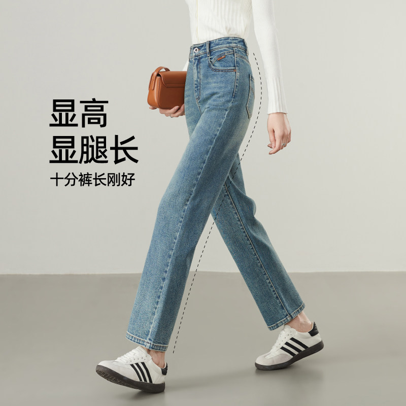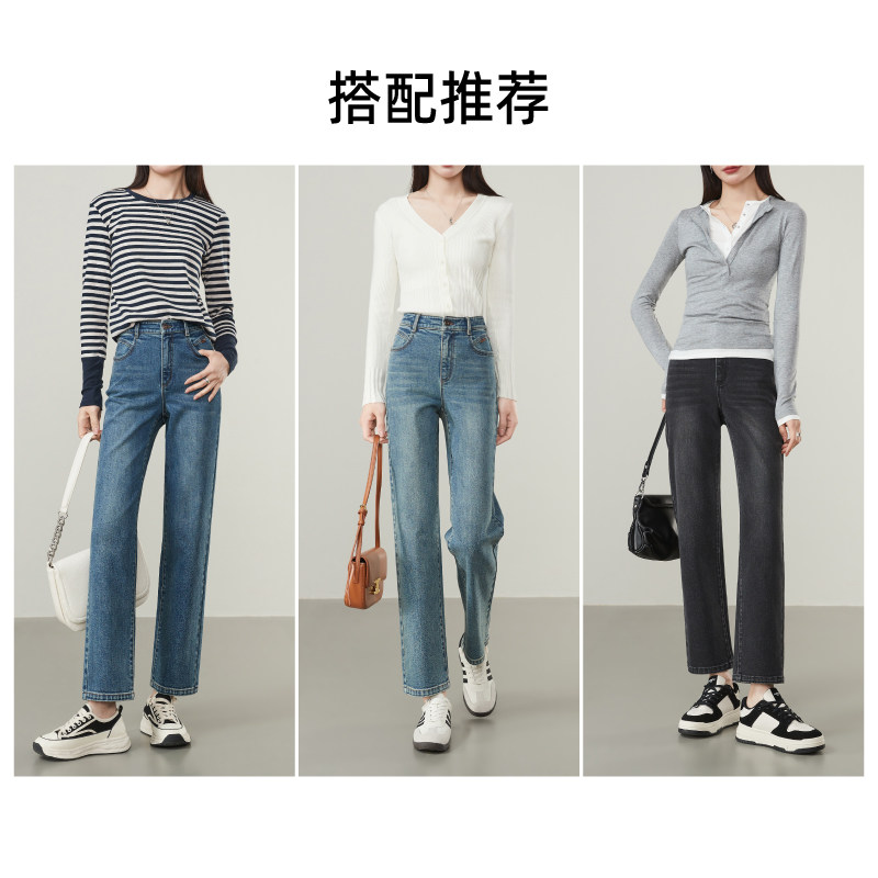 逸阳直筒牛仔裤女2025年秋季新款宽松显瘦九分窄版弹力烟管裤子