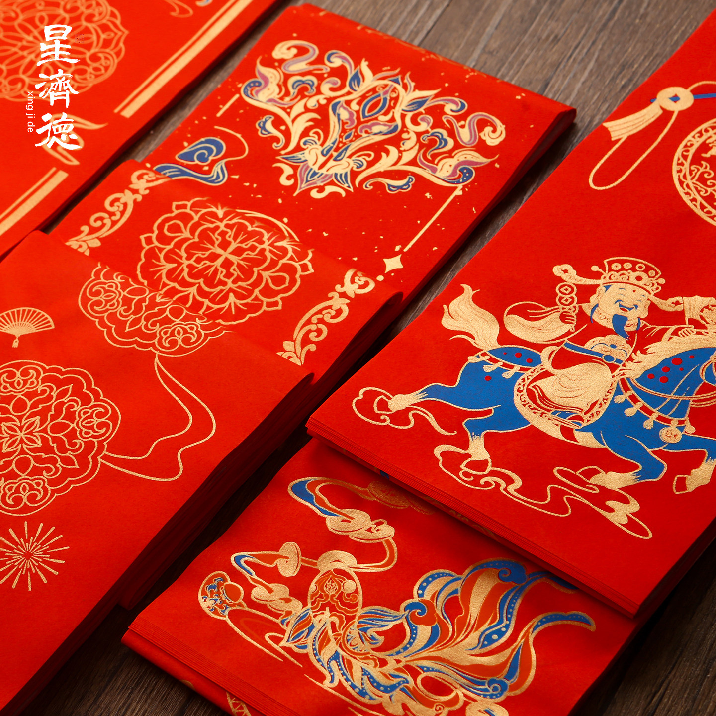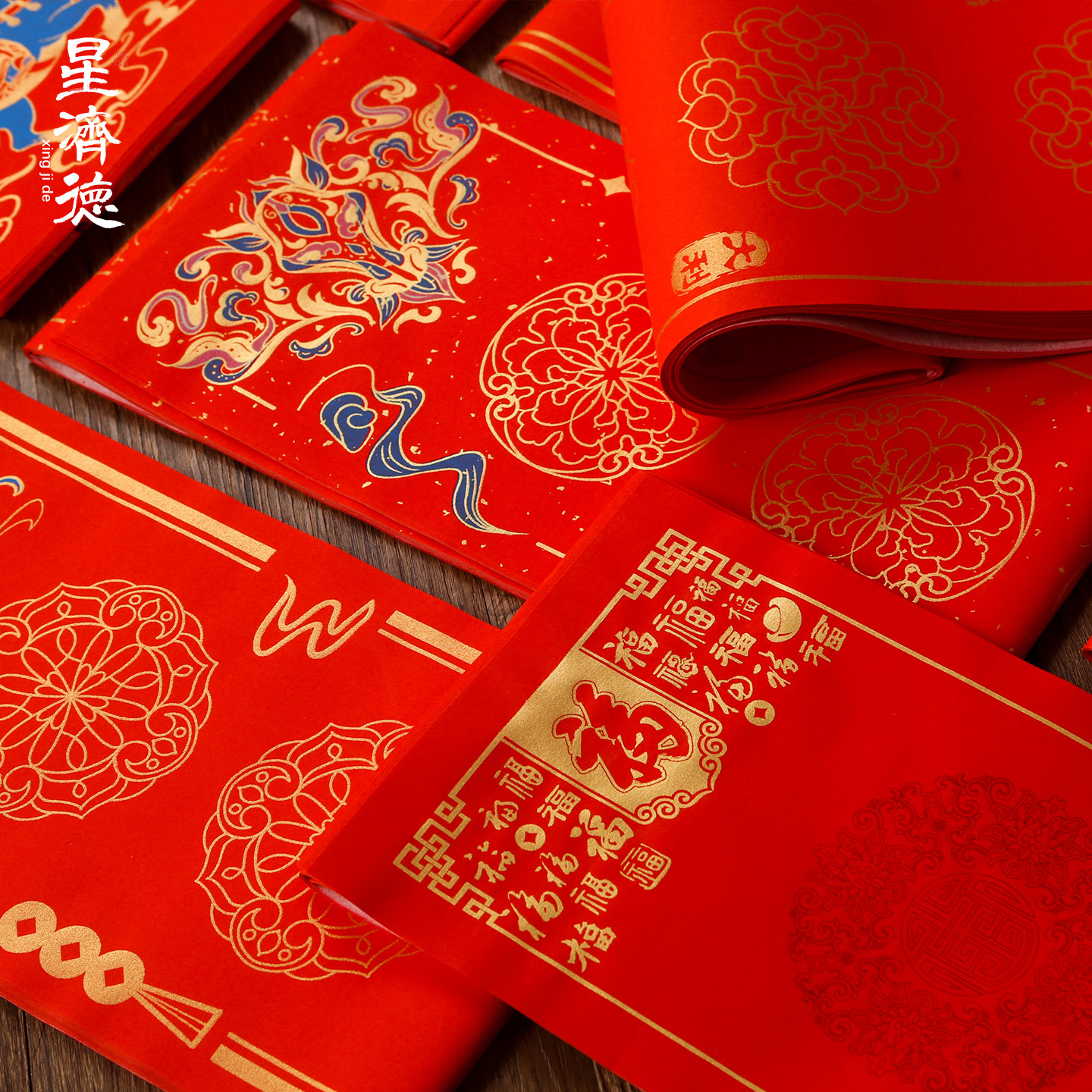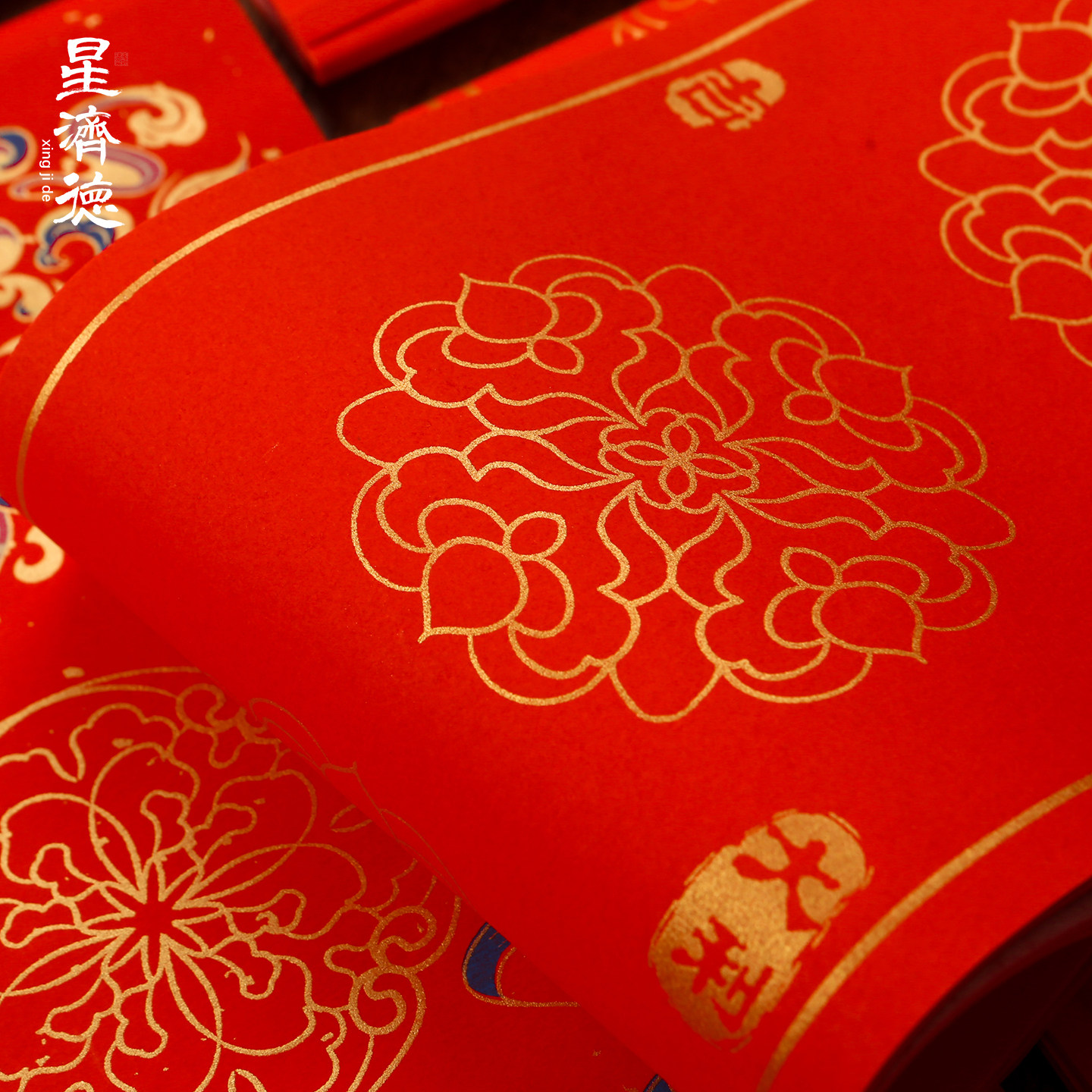 星济德对联纸2026马年新款蜡染万年红春节空白红纸手写春联纸书法毛笔自写新年福字斗方七言作品宣纸买二送一