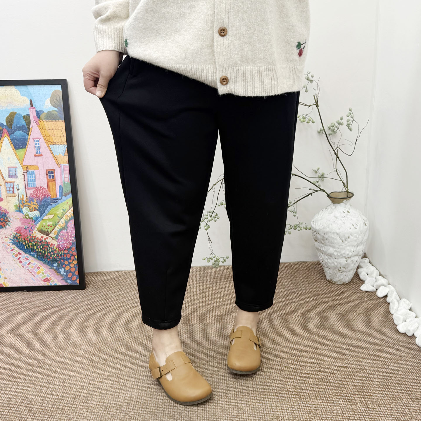 冬装大码200斤胖mm保暖女裤小个子显瘦哈伦裤 加厚加绒小脚休闲裤