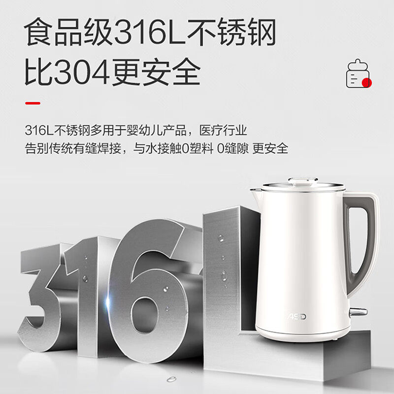 爱仕达电热水壶家用316L不锈钢一体开水壶自动断电大容量烧水壶