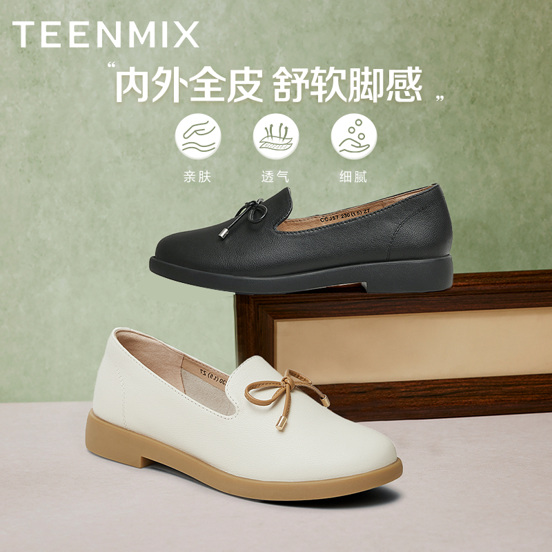 天美意软底英伦乐福鞋平底鞋女复古单鞋小皮鞋春季新款CCJ57AA5