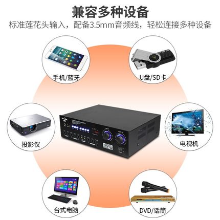 定阻功放扩音机重低音家用KTV舞台音响套装大功率AV小功放机