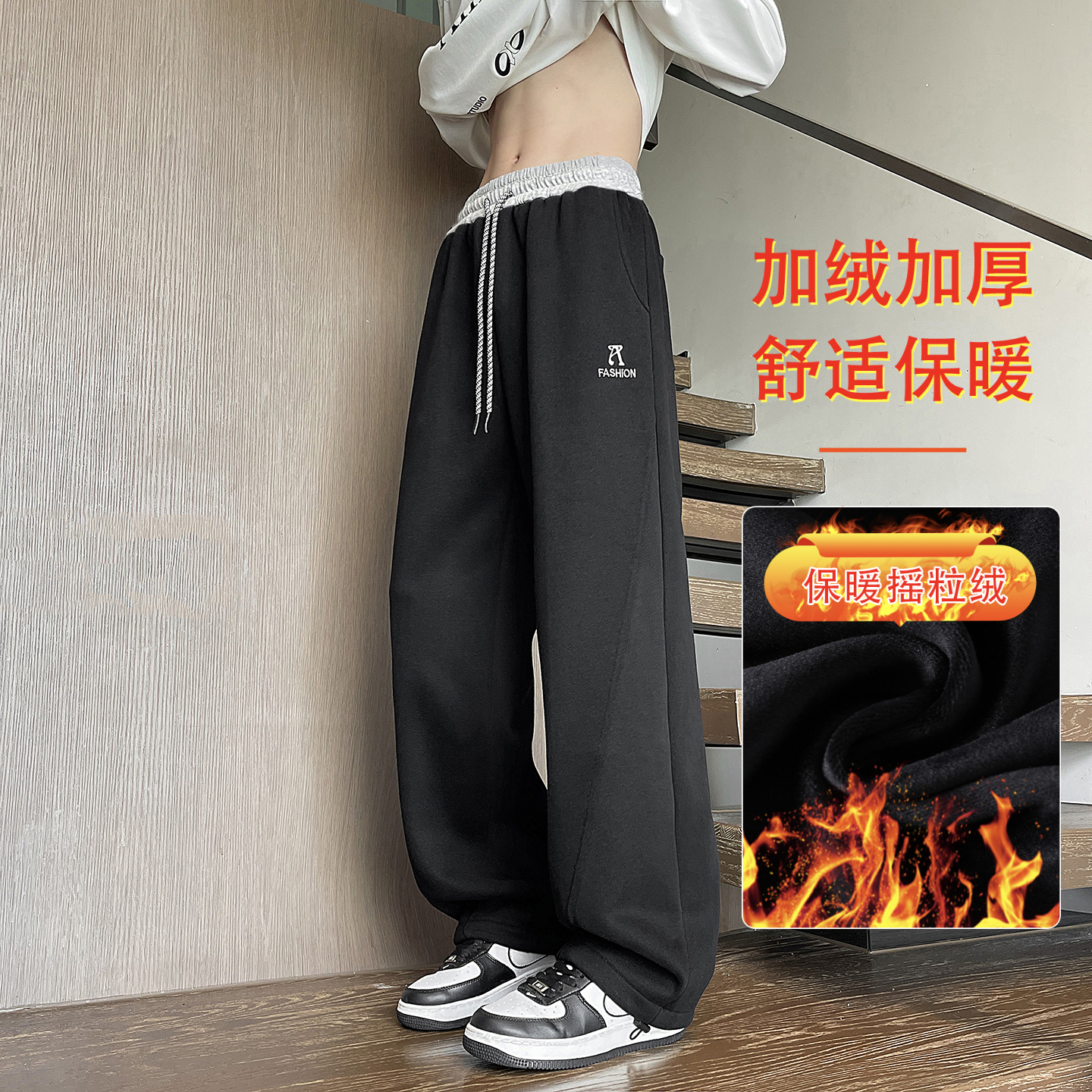 以纯卫裤潮牌休闲加绒宽松运动裤