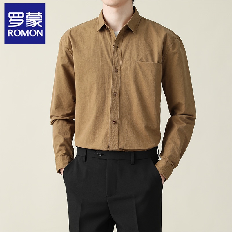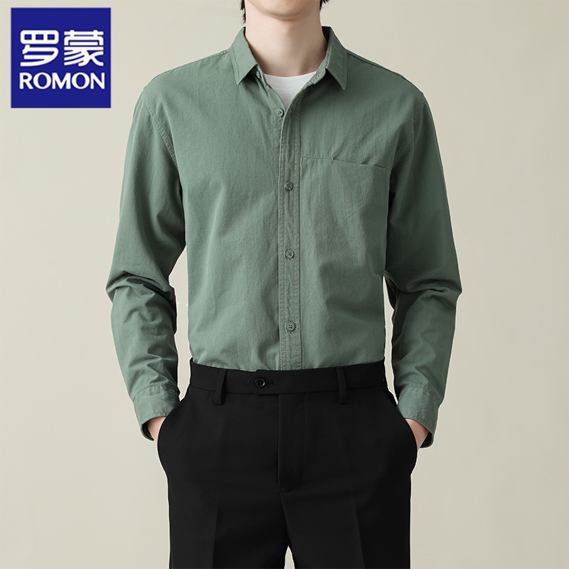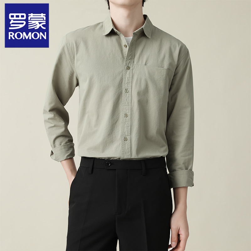 罗蒙纯棉长袖衬衫商务休闲