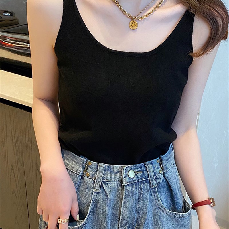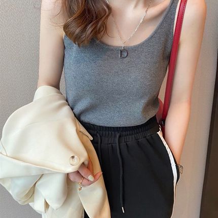 U领针织吊带背心女2024夏季新款纯色简约西装内搭上衣无袖打底衫