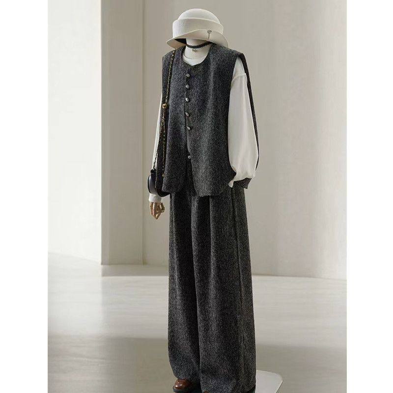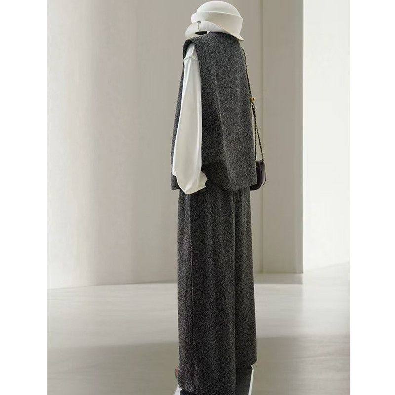 时尚休闲马甲裤子套装女大码300斤胖mm秋季轻熟上衣阔腿裤两件套2