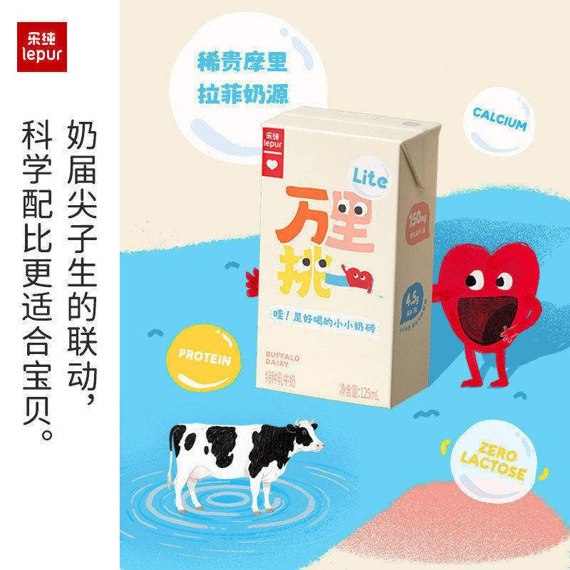 乐纯万里挑一儿童牛奶轻盈lite零乳糖水牛高钙营养早餐奶125ml9盒