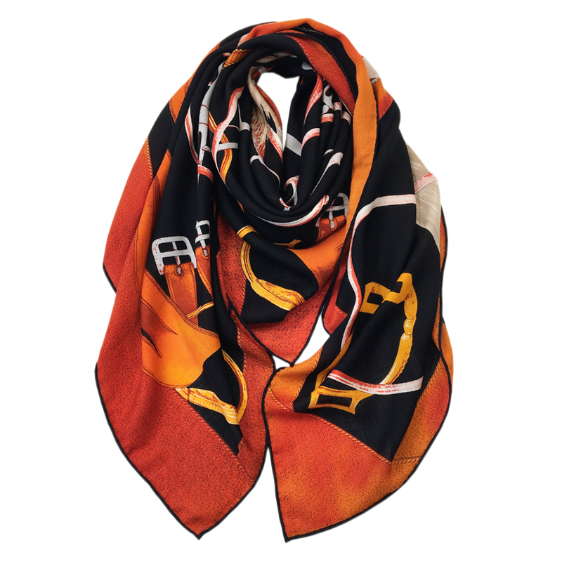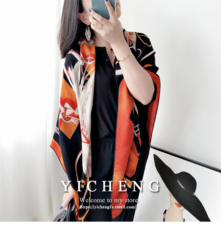【皇家马饰】大牌时尚款真丝羊毛大方巾 秋冬丝绒保暖围巾披肩女