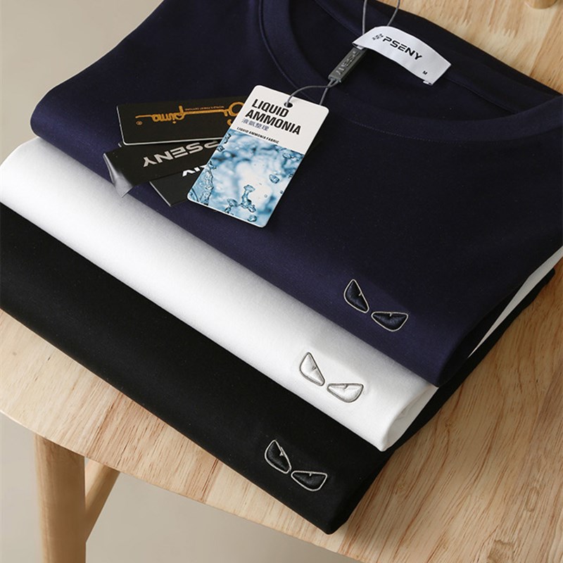 天花板级 高端80支液氨丝光匹马棉夏季舒爽男士休闲圆领短袖T恤衫